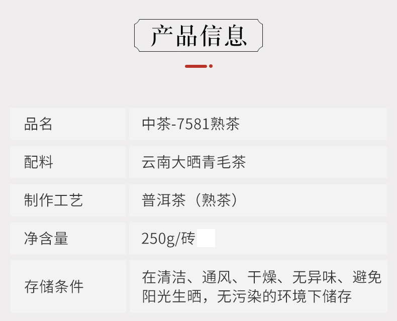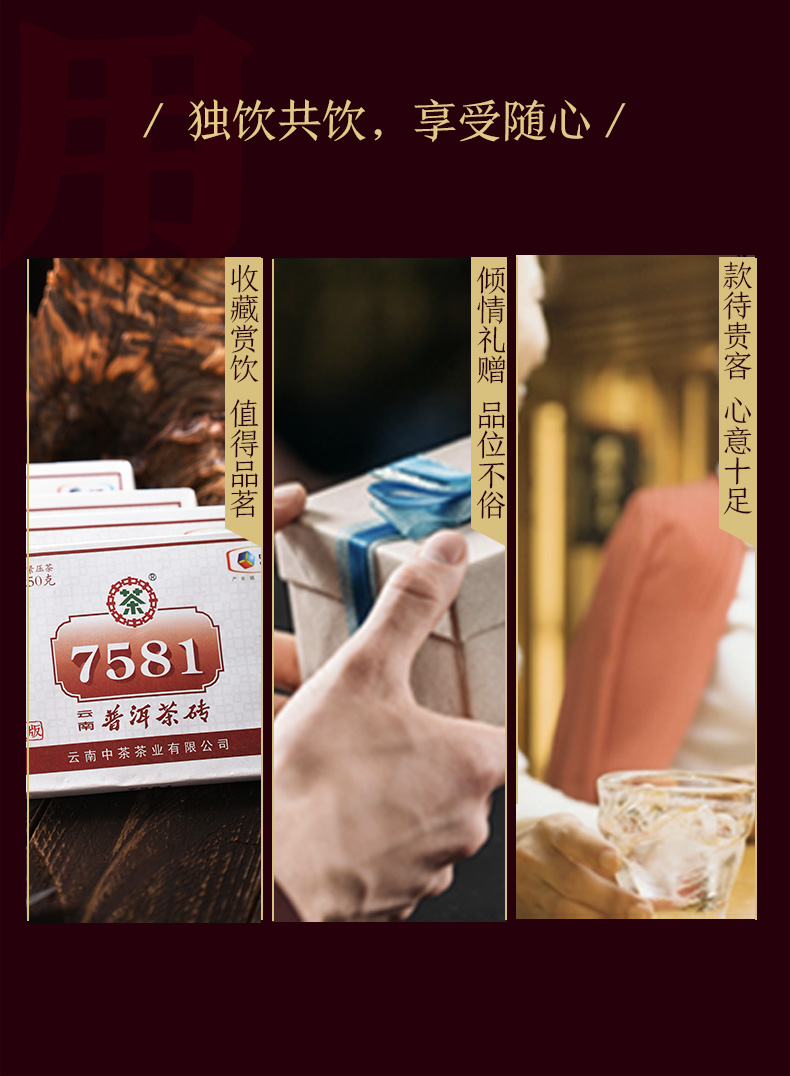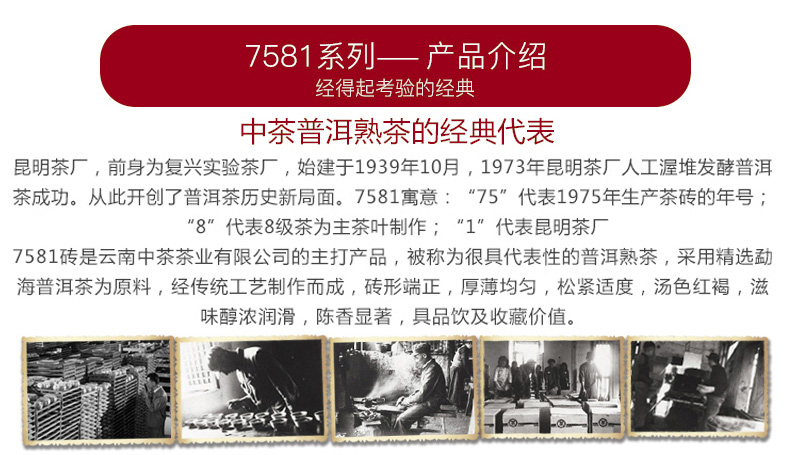 中茶牌,泉水发酵,古法传承,回归本味,口感醇厚,茶气十足,汤色红浓透亮,唇齿留香,越存越好喝,包装大气典雅,送礼收藏之选!