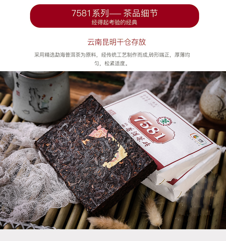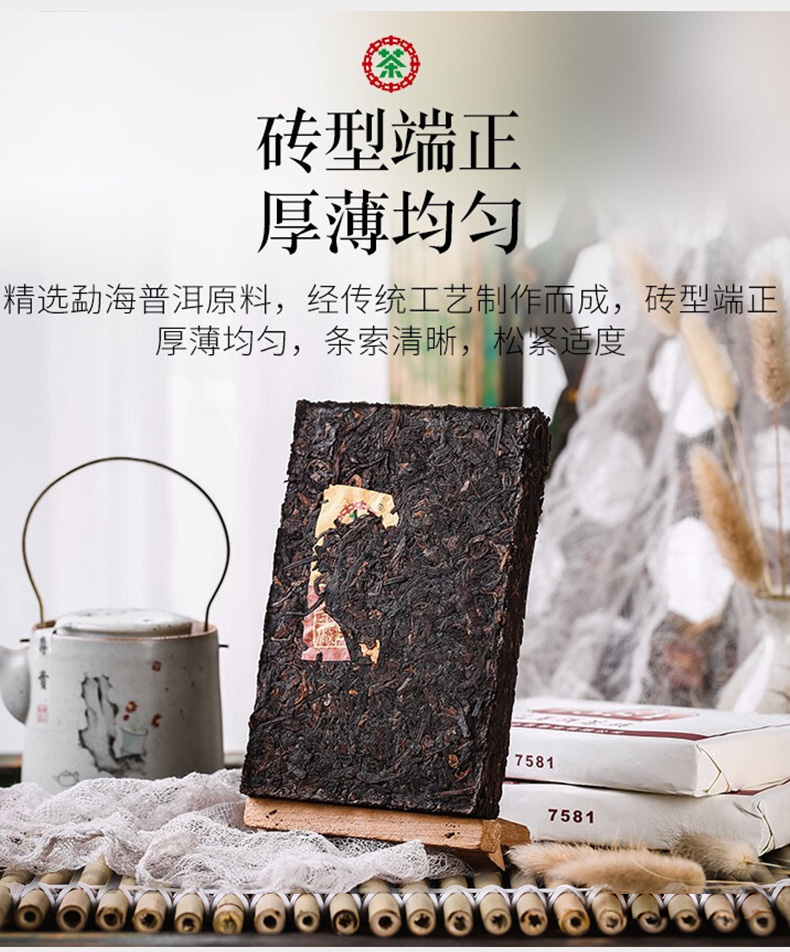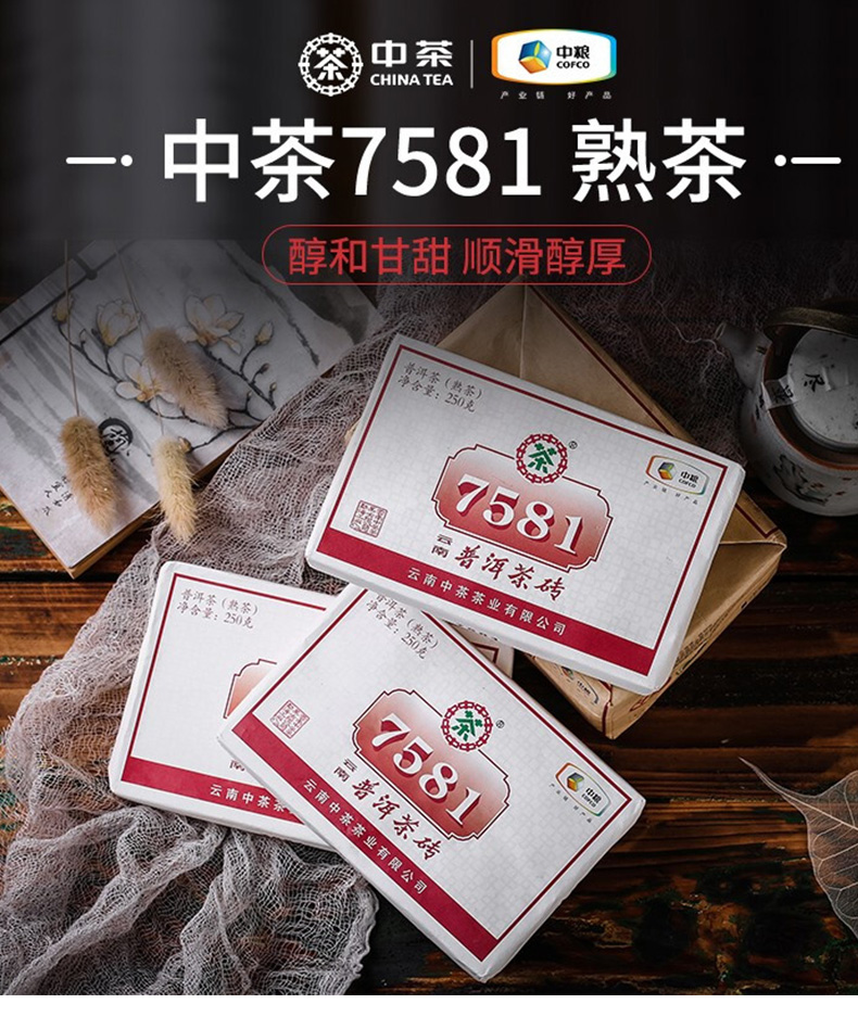 中茶云南普洱茶熟茶砖茶经典7581标杆茶砖250g熟砖中粮正品茶叶
