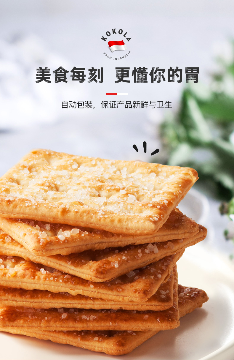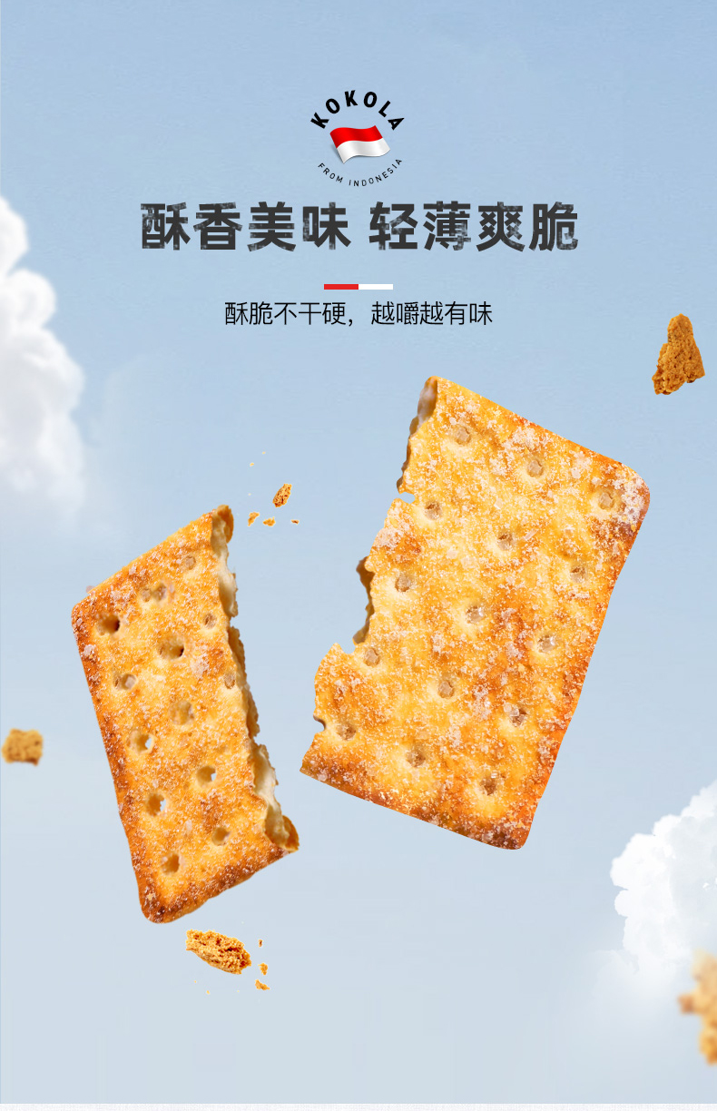 【kokola旗舰店】可可乐印尼进口蒜香面包味曲奇薄脆饼干,片片清脆,咬一口咔咔脆响,感受饼干在嘴巴奔跳的酥脆,一片一片停不下来,早餐、零食、下午茶一袋解决~