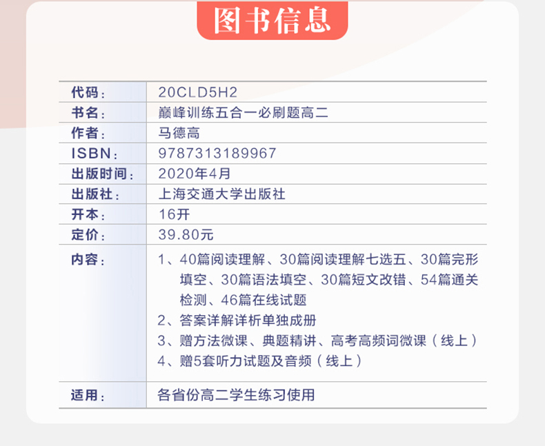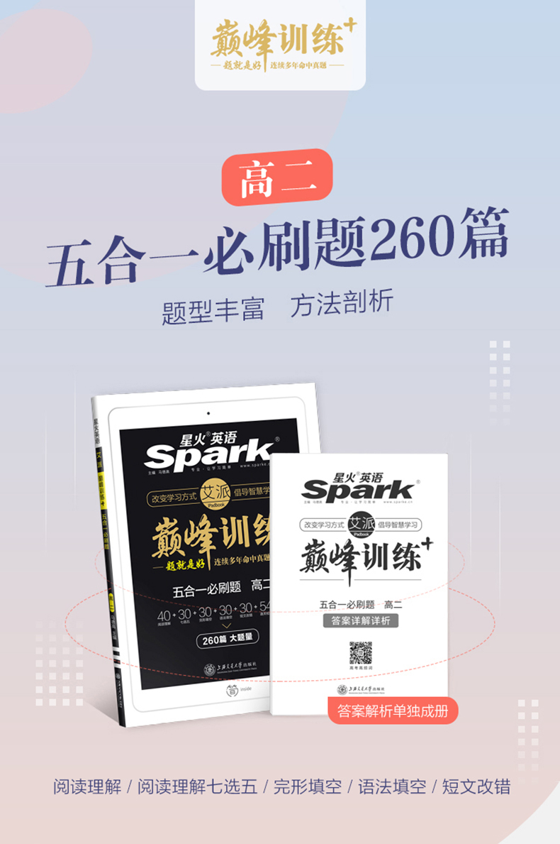 2020新版星火英语高中高二五合一必刷题260篇 高二英语阅读理解完形填空七选五语法填空短文改错巅峰训练火星英语专项训练练习题册