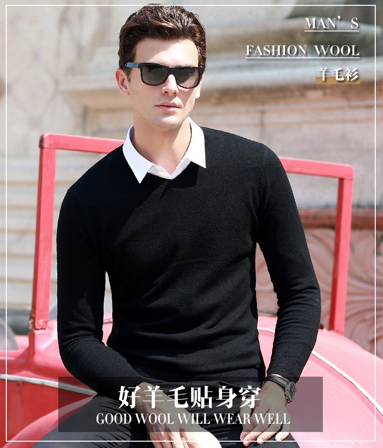 秋冬季长袖毛衣男士韩版修身薄款圆领打底衫上衣男装加厚羊毛衫