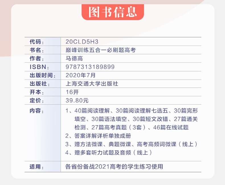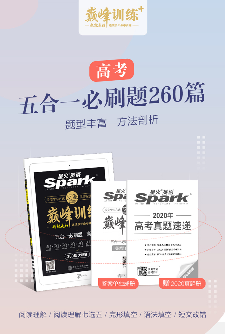 2020新版星火英语高中高考五合一必刷题阅读理解与完形填空七选五语法填空短文改错巅峰训练高三火星英语专项练习册含2019高考真题