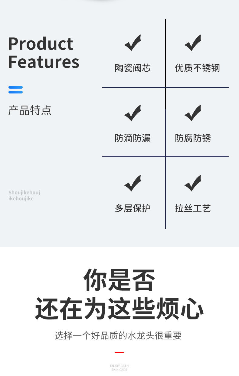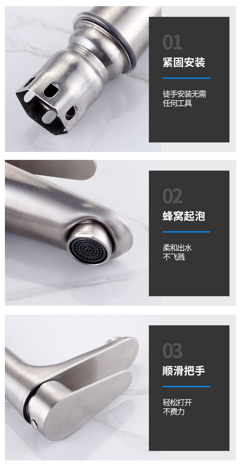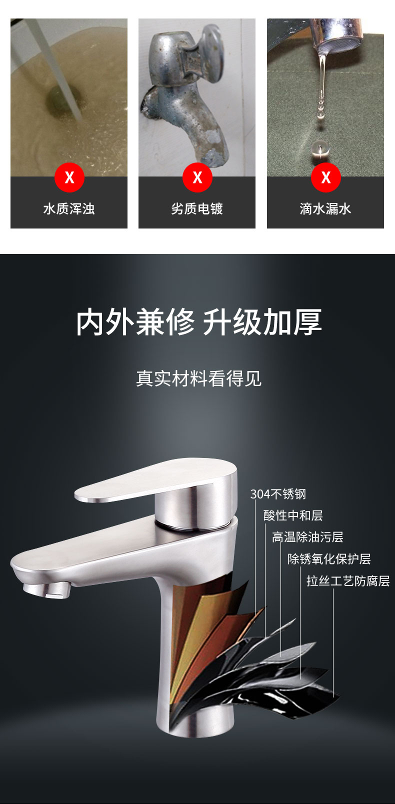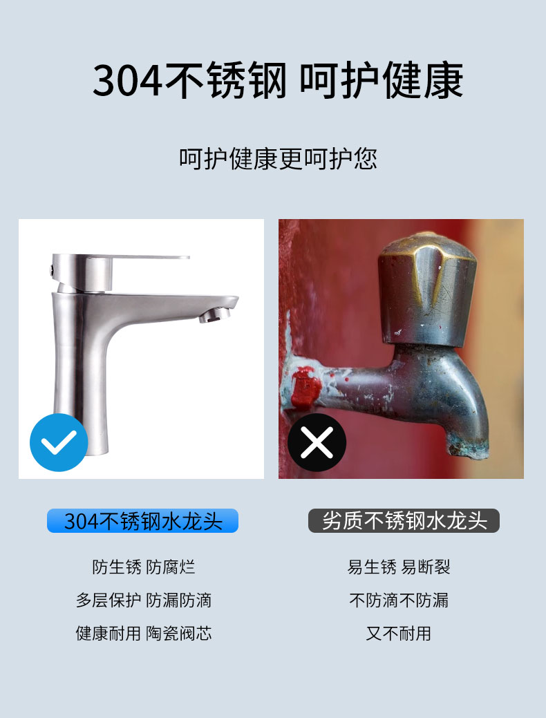不锈钢水龙头,不电镀,不藏污,易清洁,内外兼修,防滴防漏,牢固耐用,304不锈钢,呵护健康