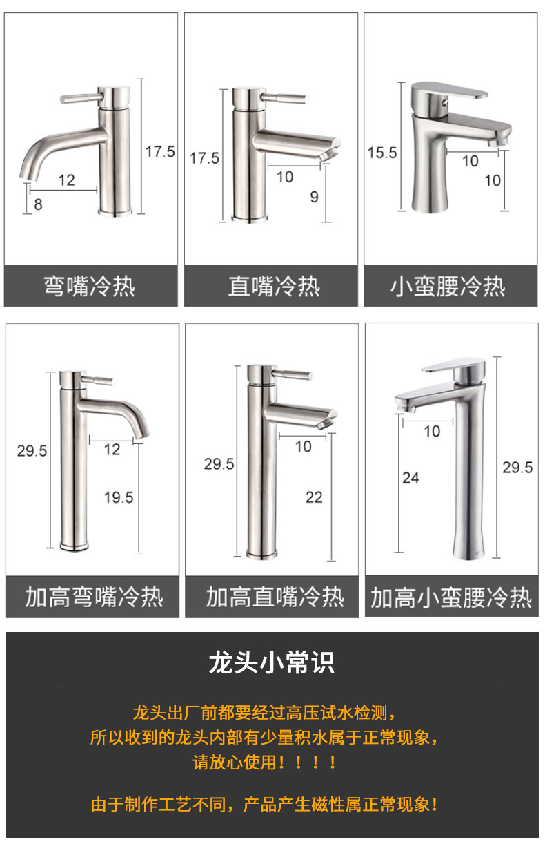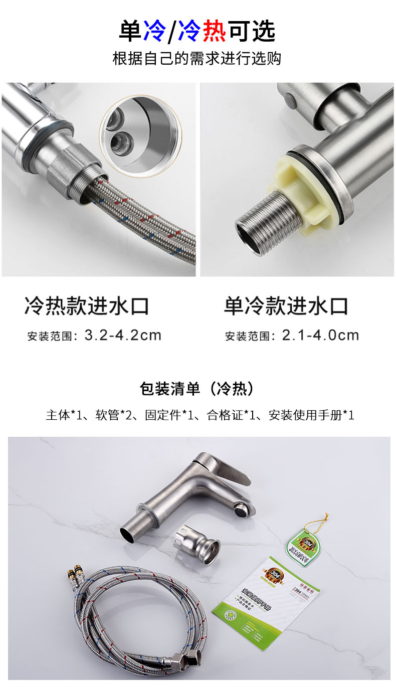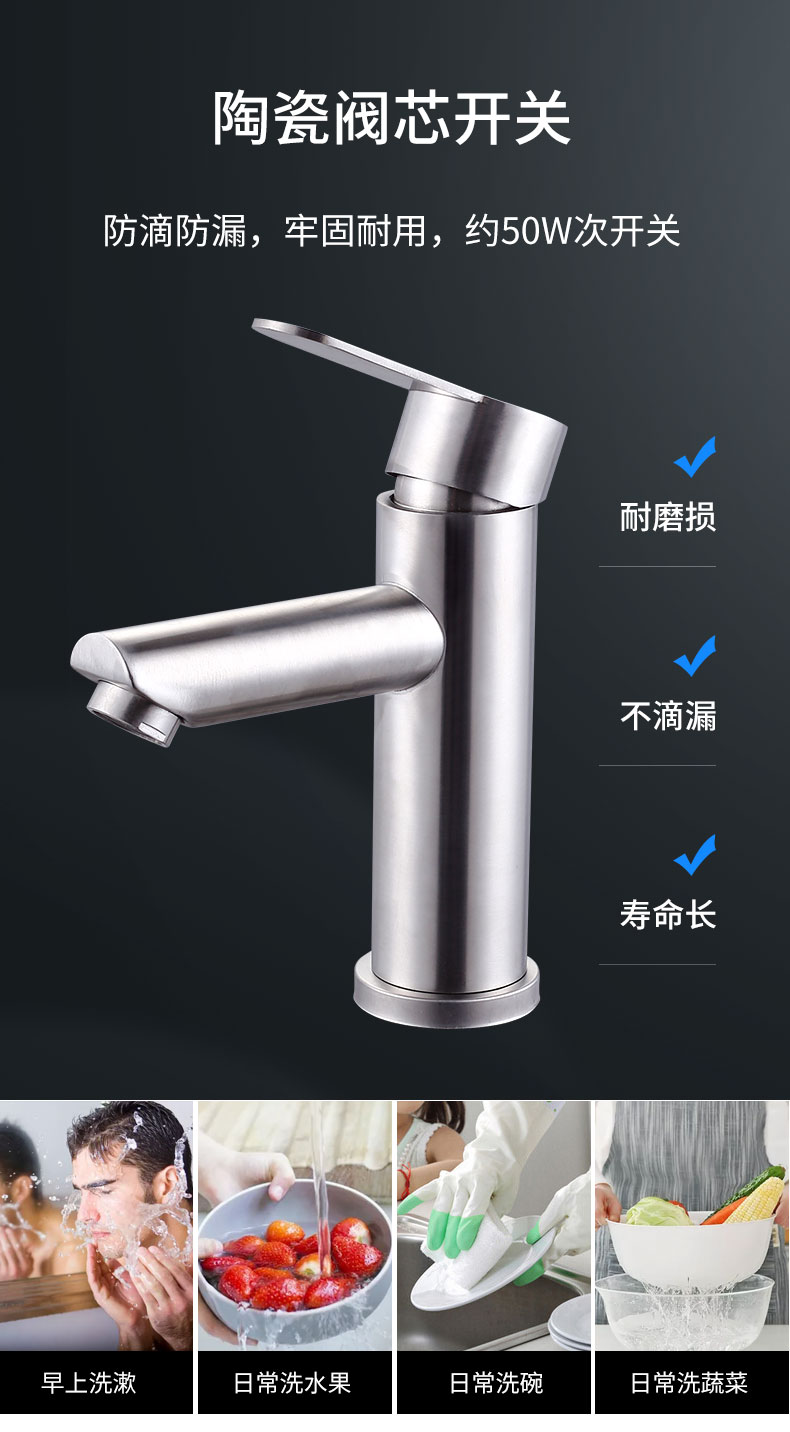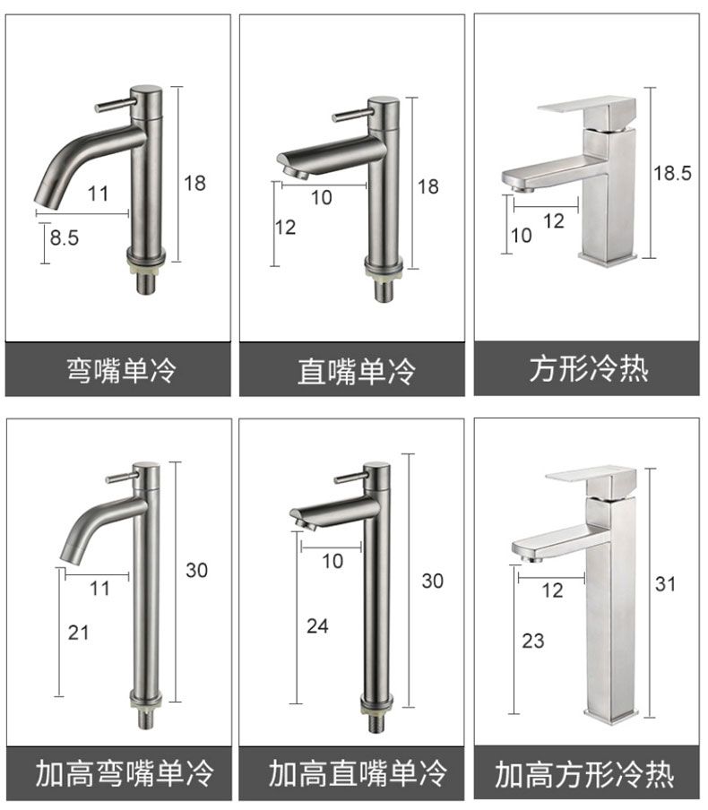 304不锈钢水龙头家用卫生间洗手洗脸盆冷热台盆加高单冷面盆龙头