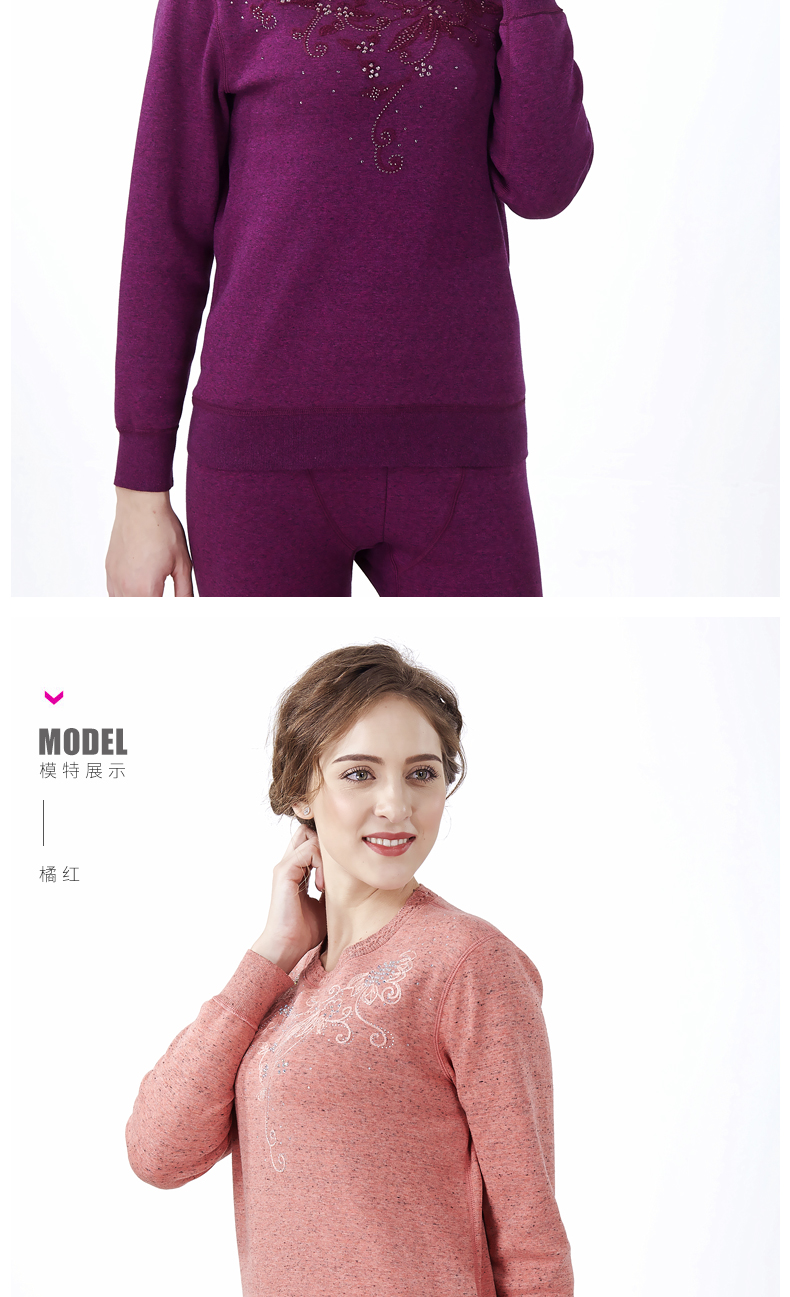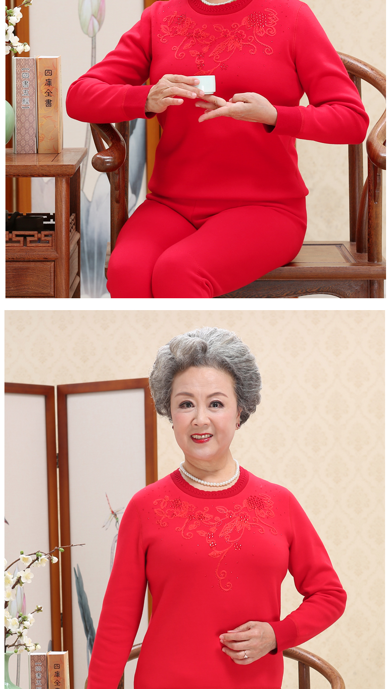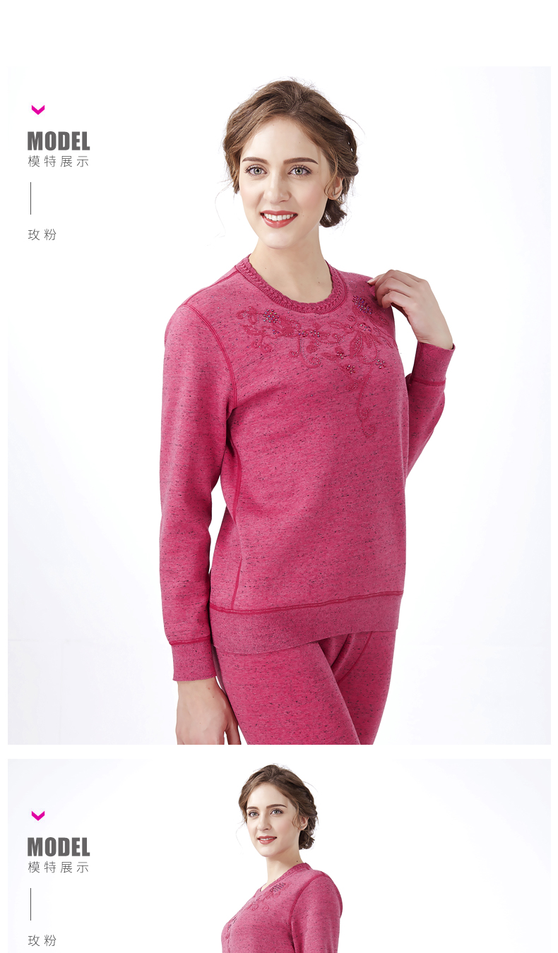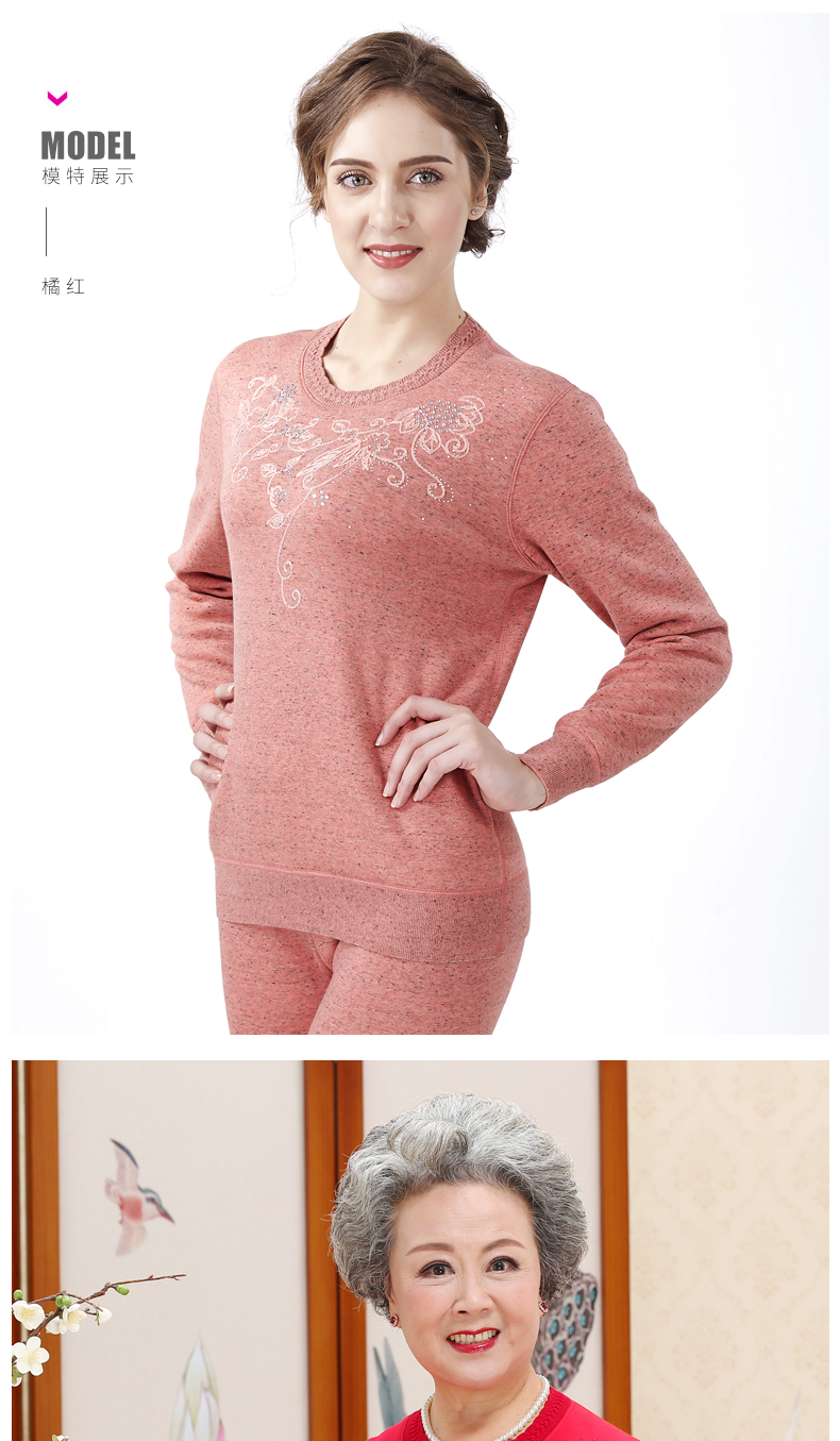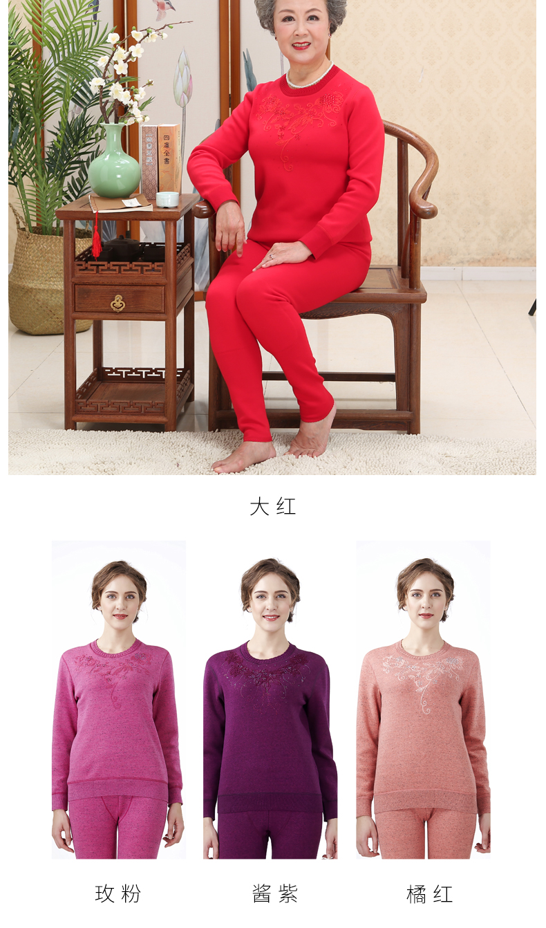 鸥都女士纯棉保暖内衣加厚加绒加肥加大码中老年套装妈妈秋衣秋裤