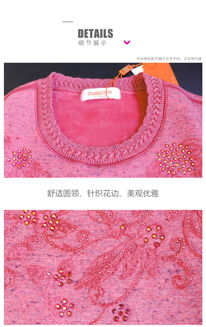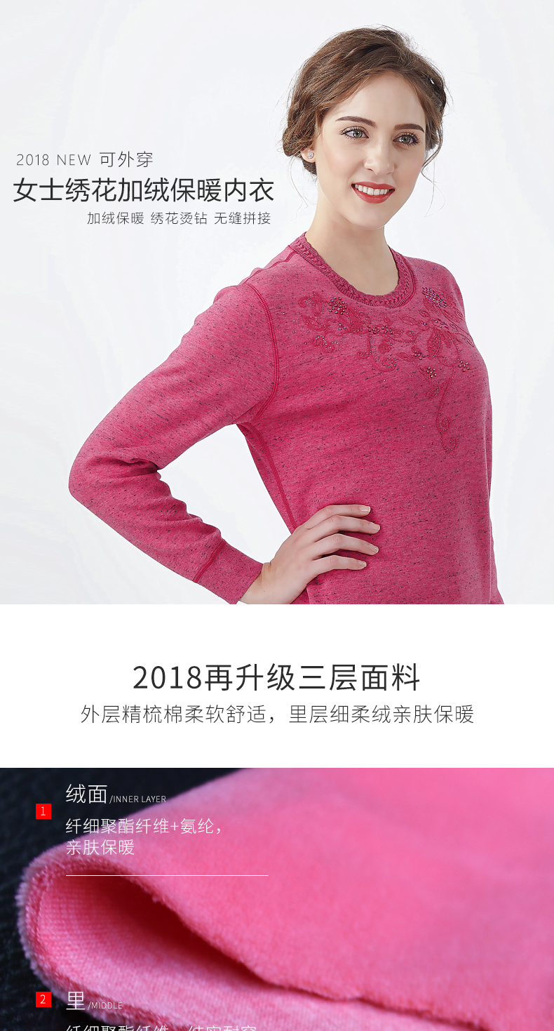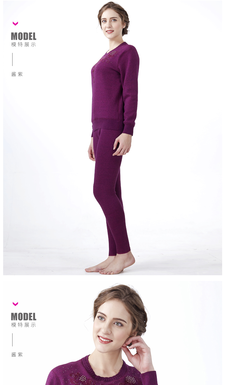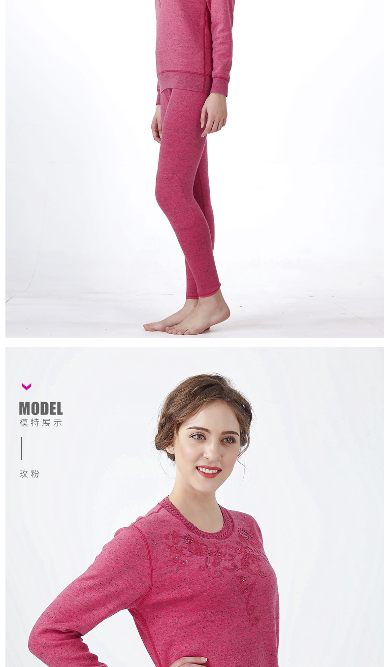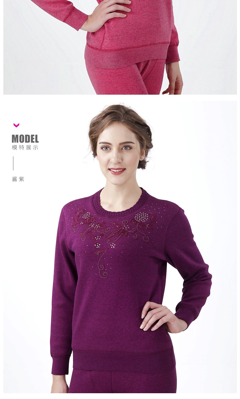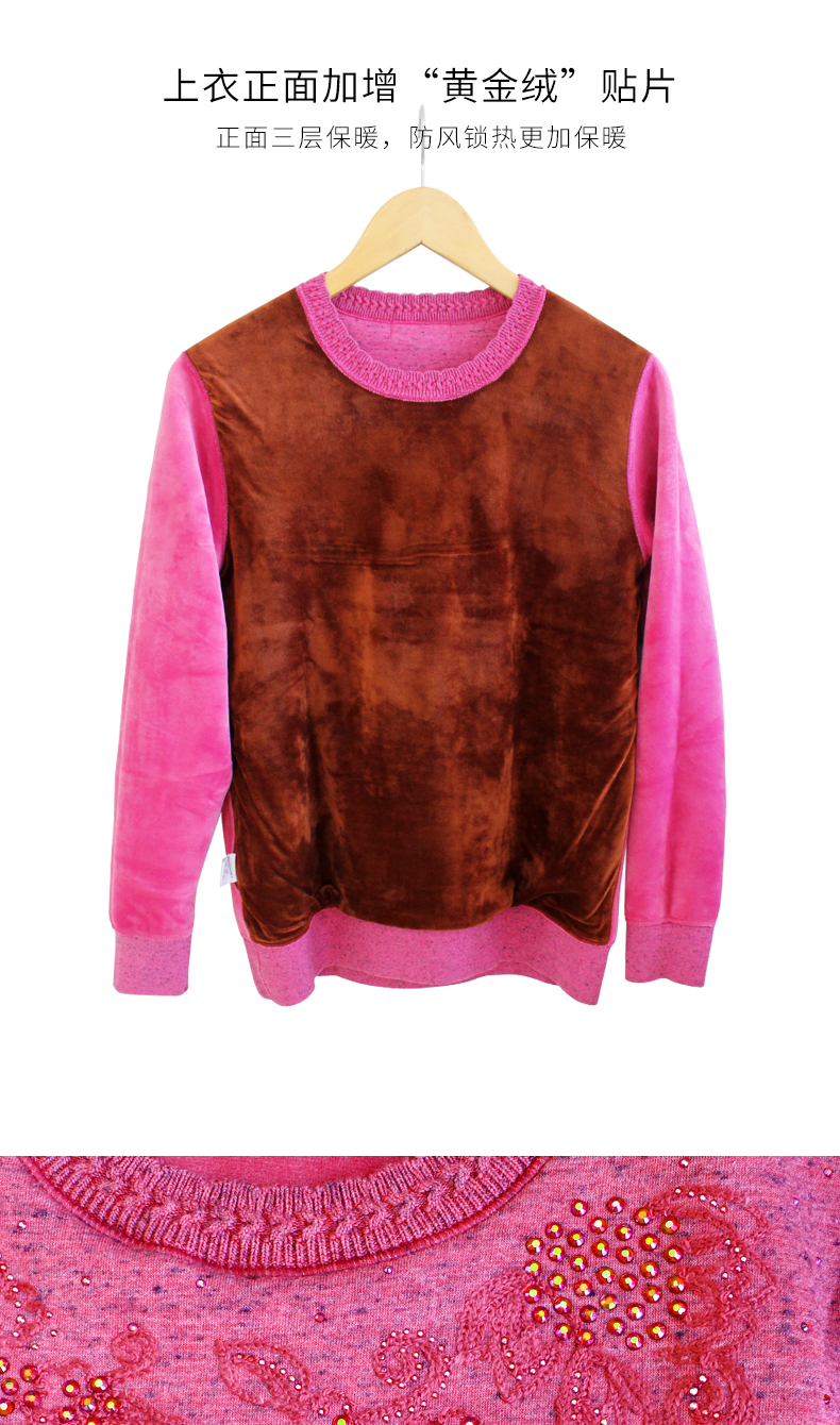 鸥都女士纯棉保暖内衣加厚加绒加肥加大码中老年套装妈妈秋衣秋裤