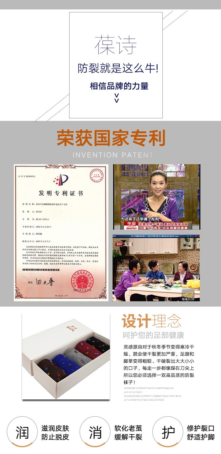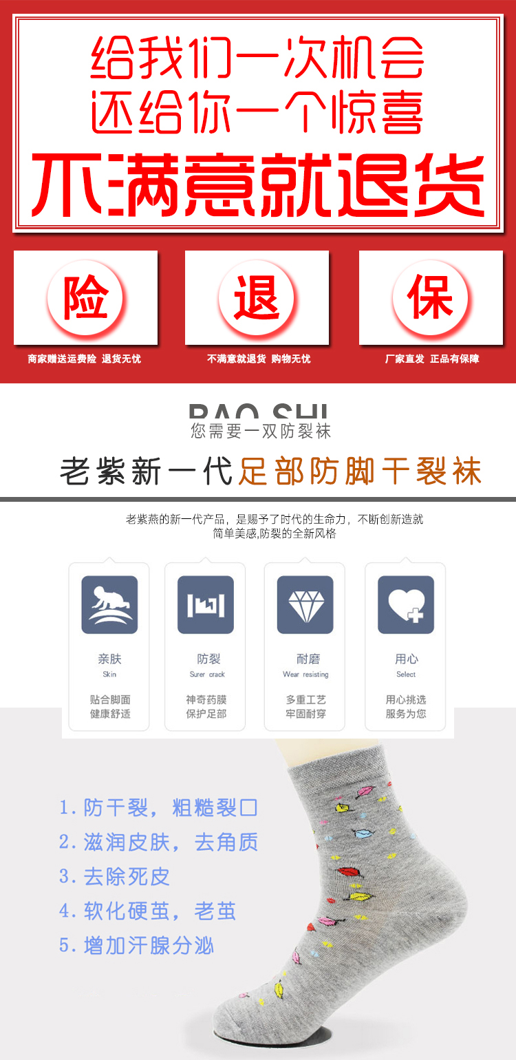 BSFL葆诗防脚裂袜子女士防干裂足裂脚裂袜脚干裂防裂袜秋冬厚棉袜