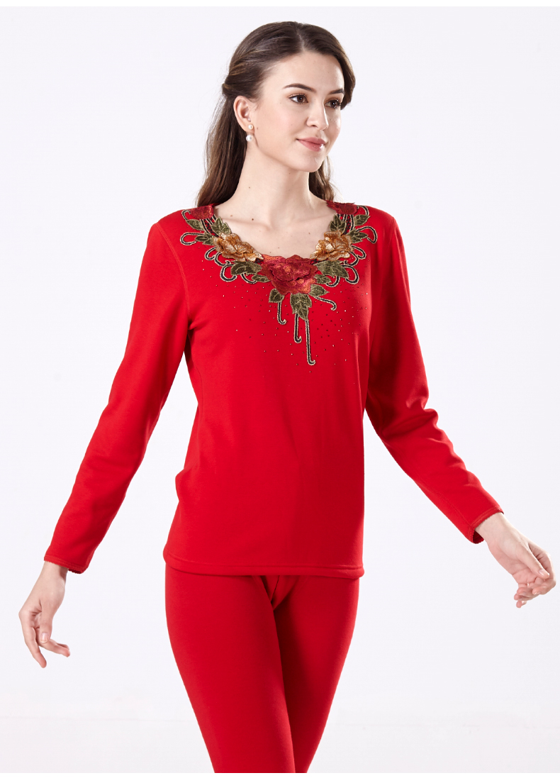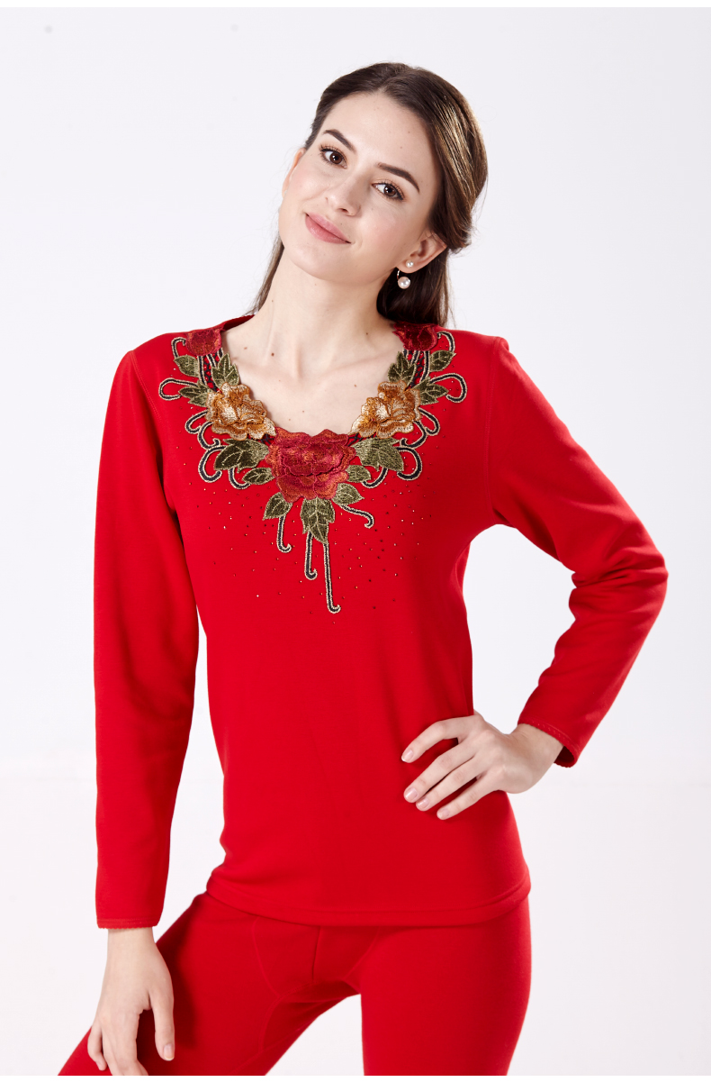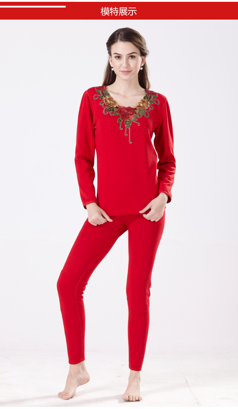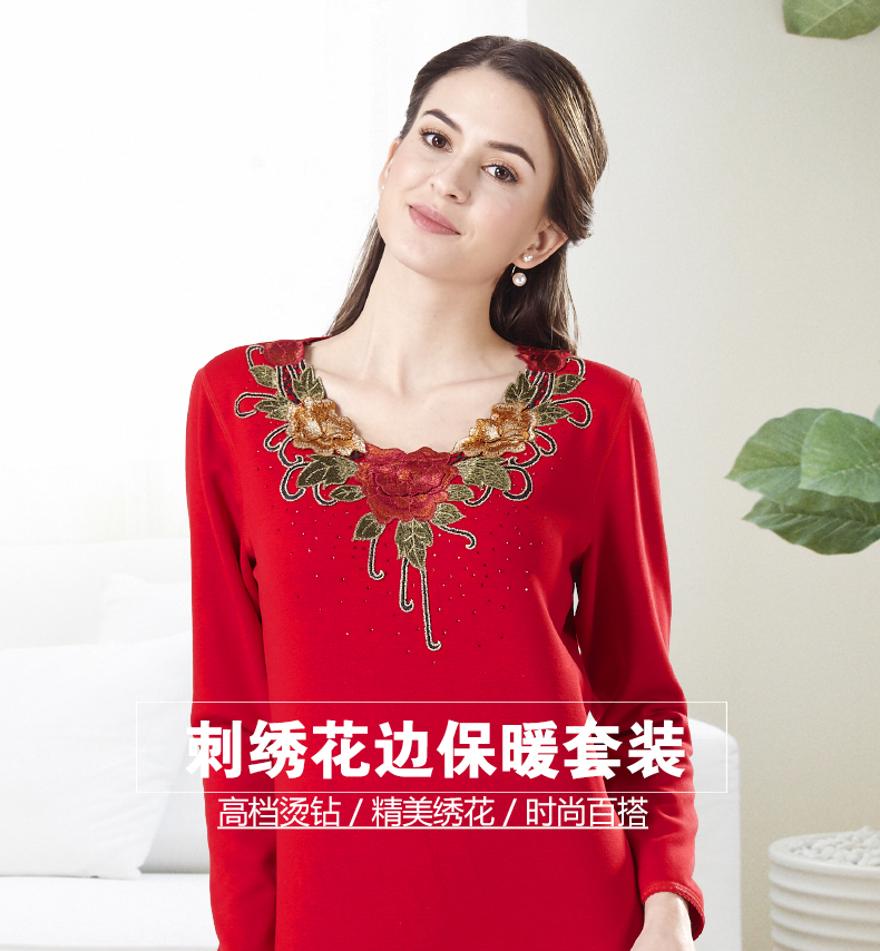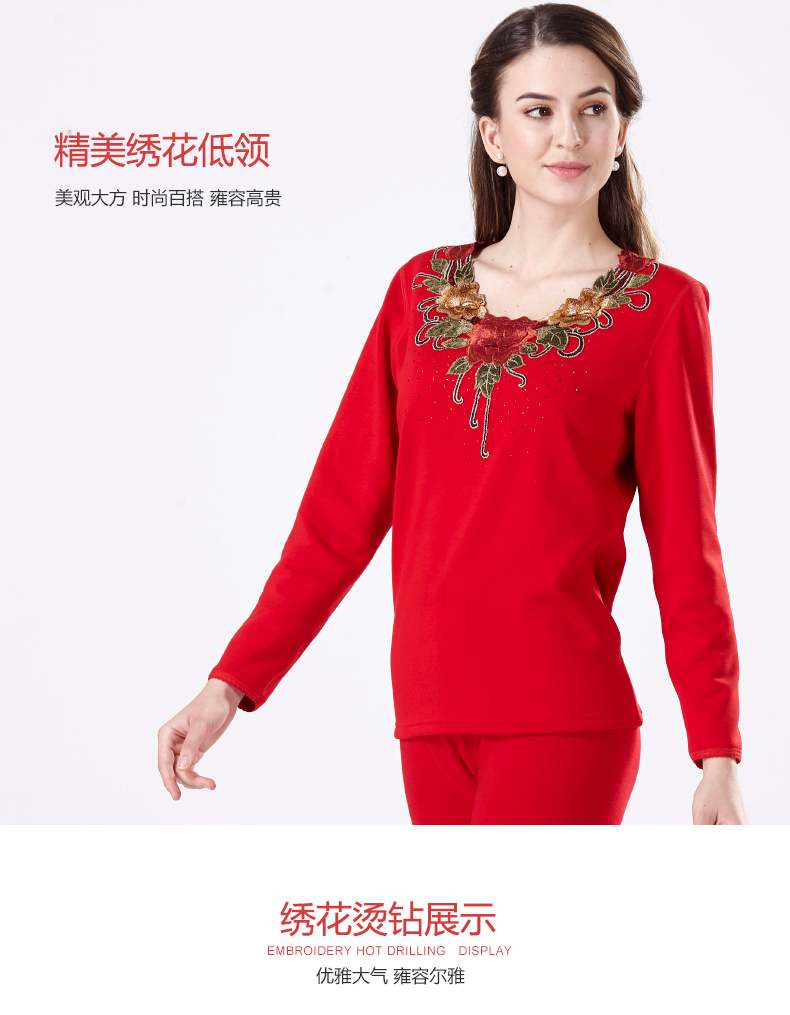 女士保暖内衣加厚加绒加肥加大码中老年老人妈妈本命年大红色套装