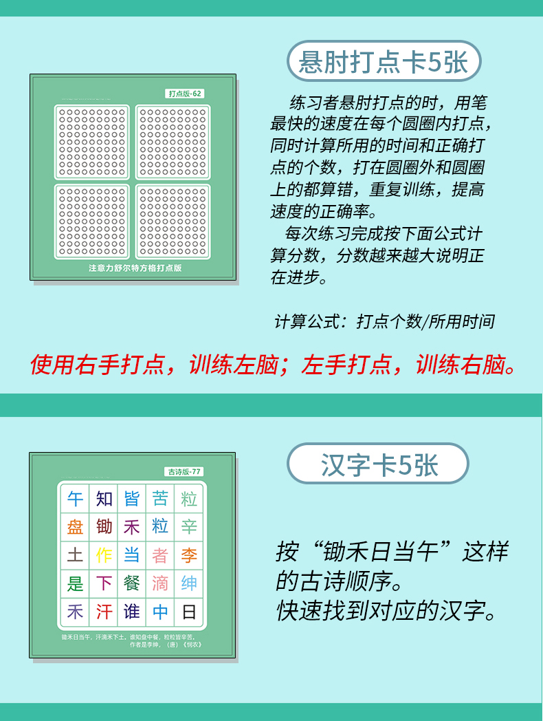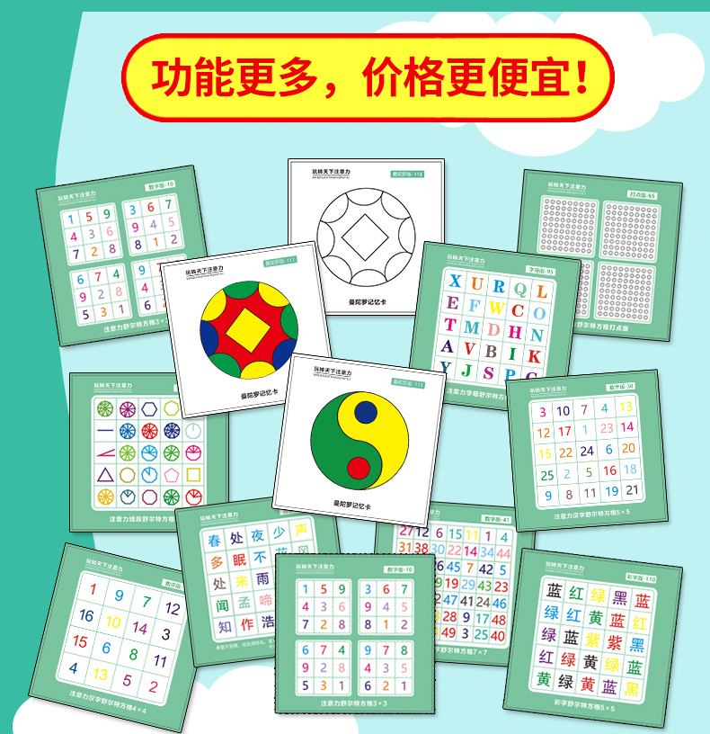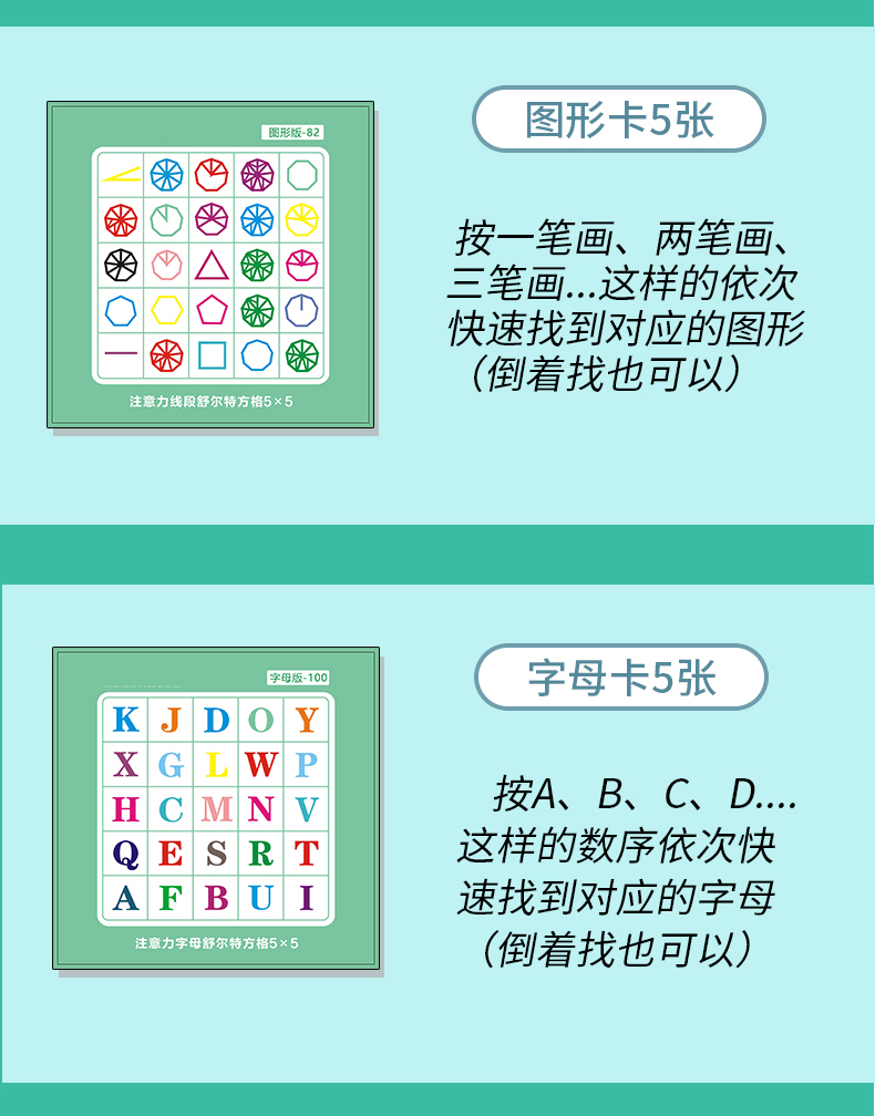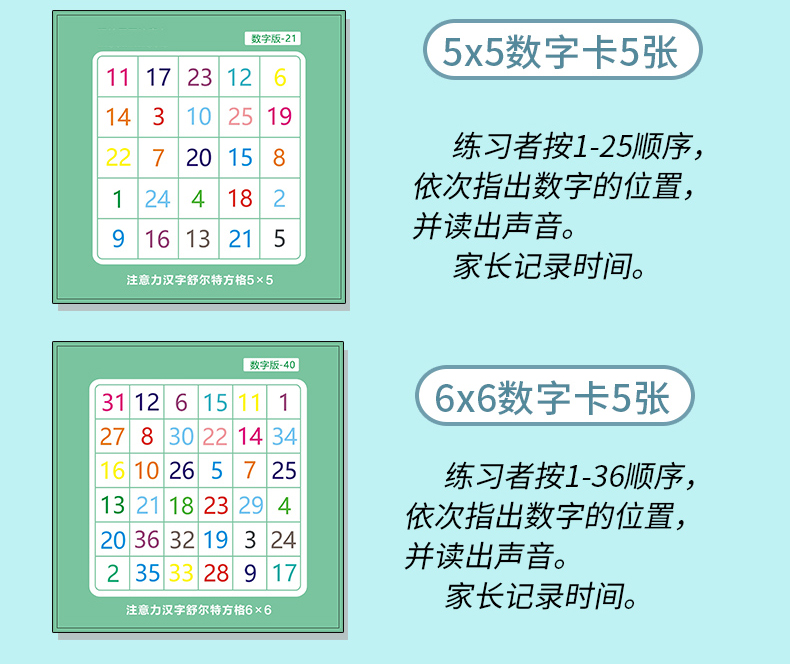 【舒尔特方格】卡片精美,反复使用,促进宝宝视觉注意力发展,提高宝宝辨认细节的能力。符合儿童思维,益智训练,每天5分钟,提高孩子专注力。