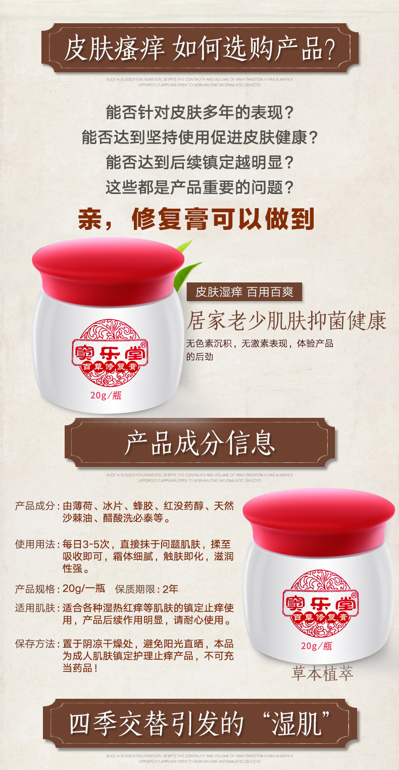 窦乐堂皮肤瘙痒百草止痒膏过敏身上湿痒成人型软膏全身老年人杀菌