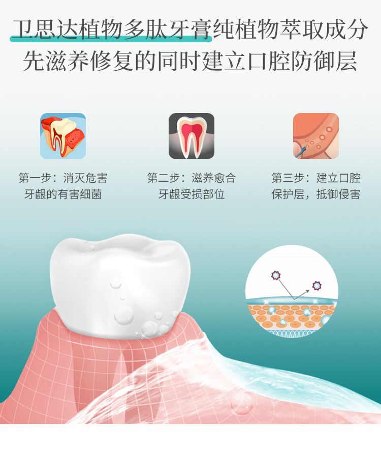 植物多肽,清新舒爽,清洁抑菌,食品级安全,低研磨,低泡沫,不伤牙釉质,保护牙齿健康,含DCPA美白因子,不含氟,美白抗敏感,去牙渍,烟渍,口臭,7天无理由退货