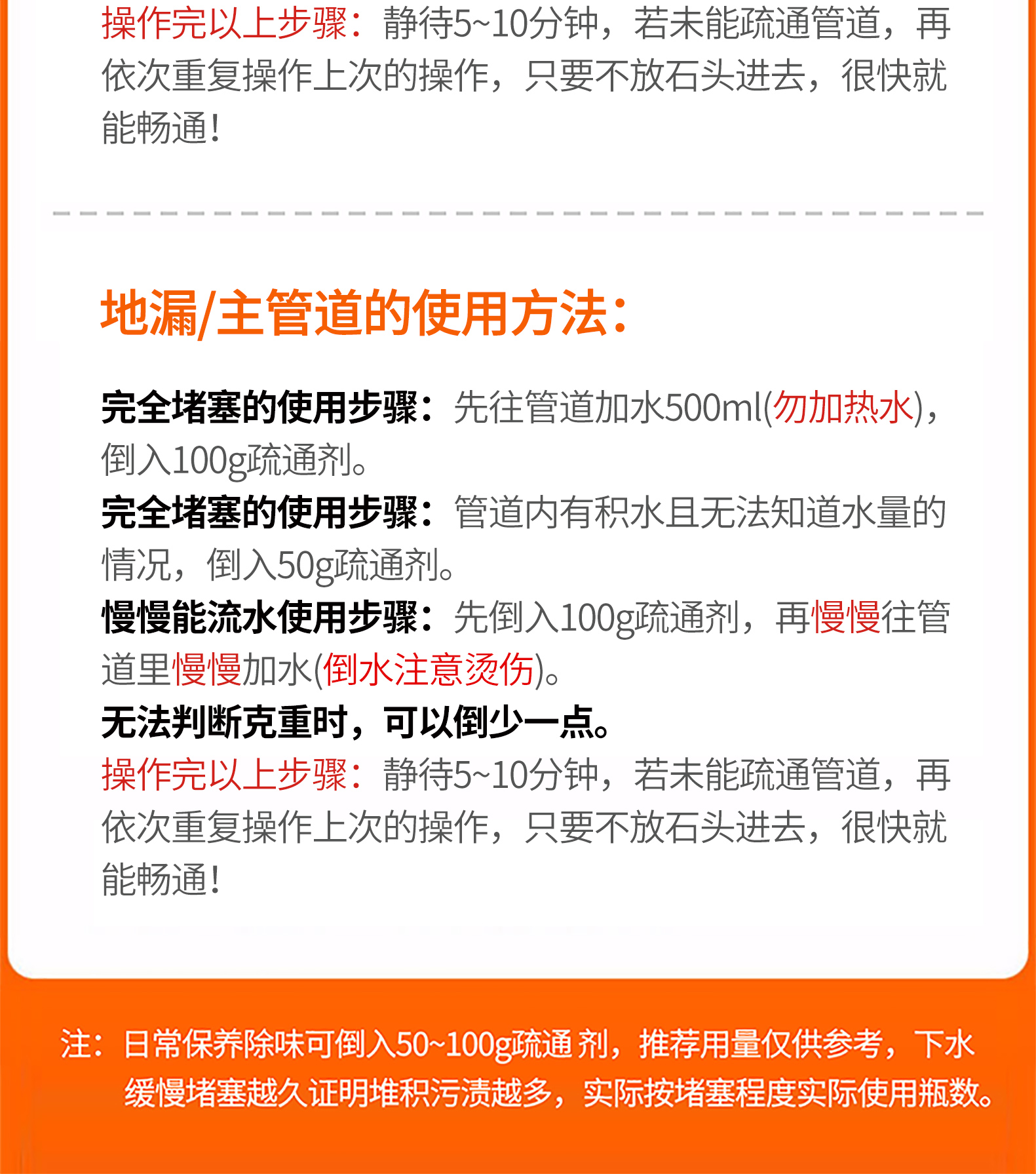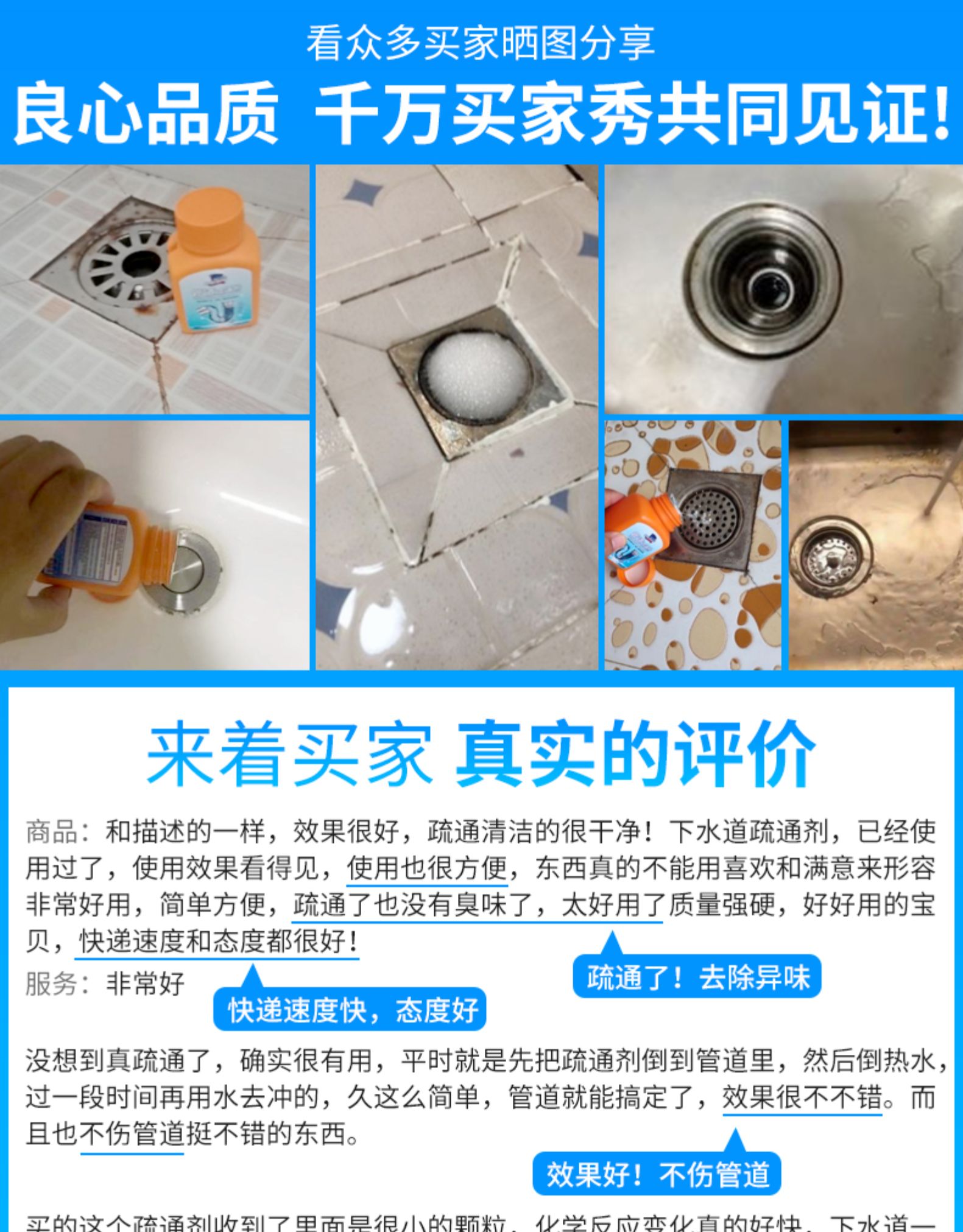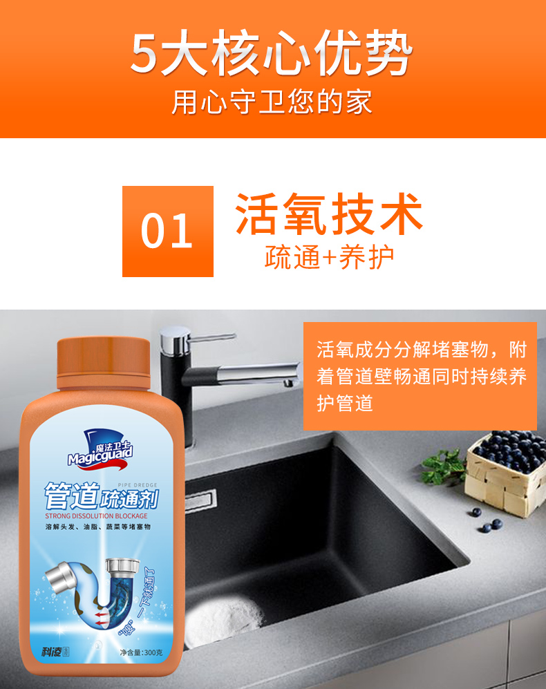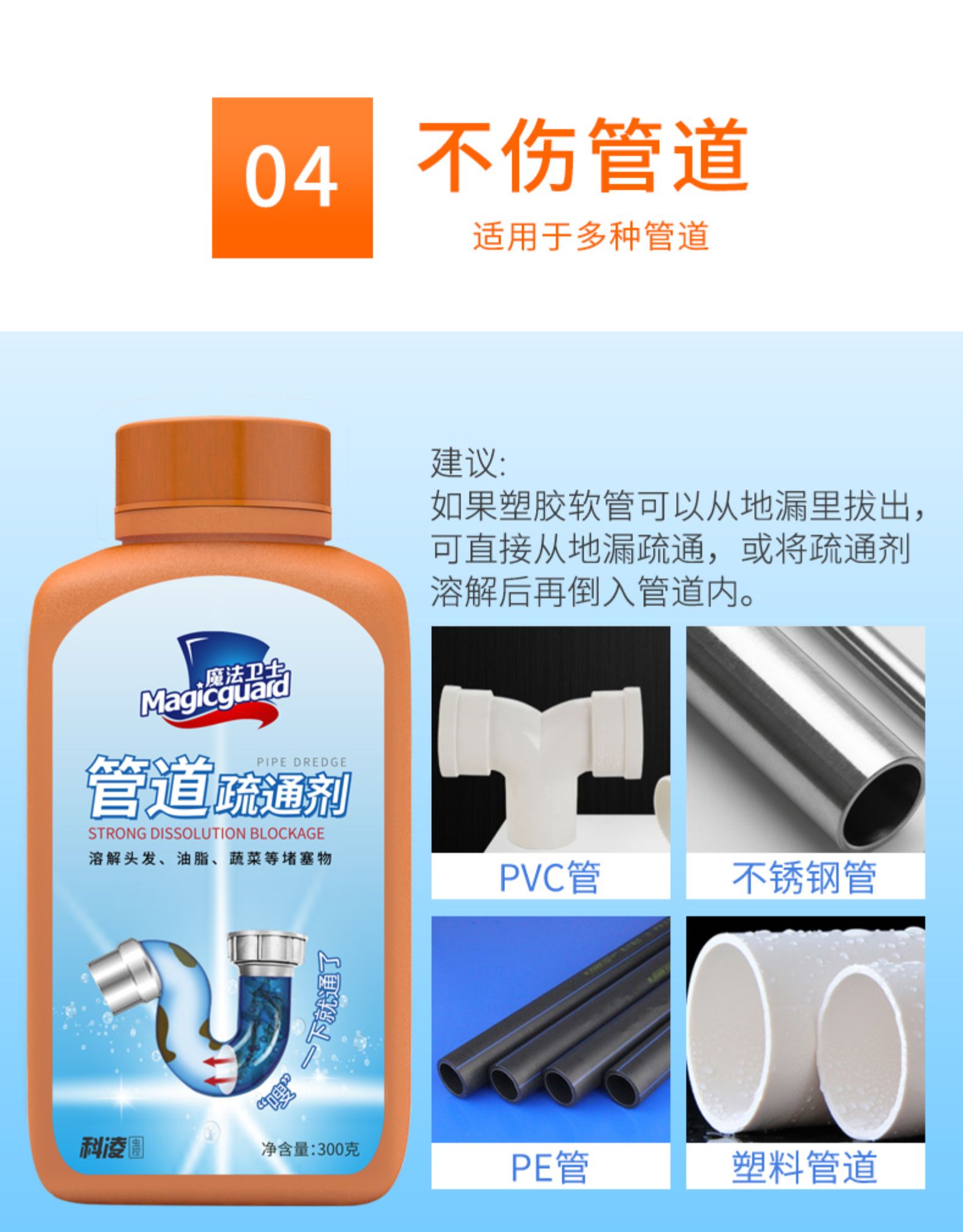 魔法卫士强力管道疏通剂地漏厨房水管下水道堵塞疏通神器厕所除臭