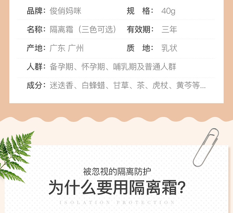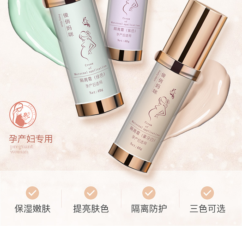 俊俏妈咪孕妇专用隔离霜,BB遮瑕粉底液妆前乳怀孕期可用化妆品彩妆,药监局审批,孕产妇适用,三色可选,放心使用