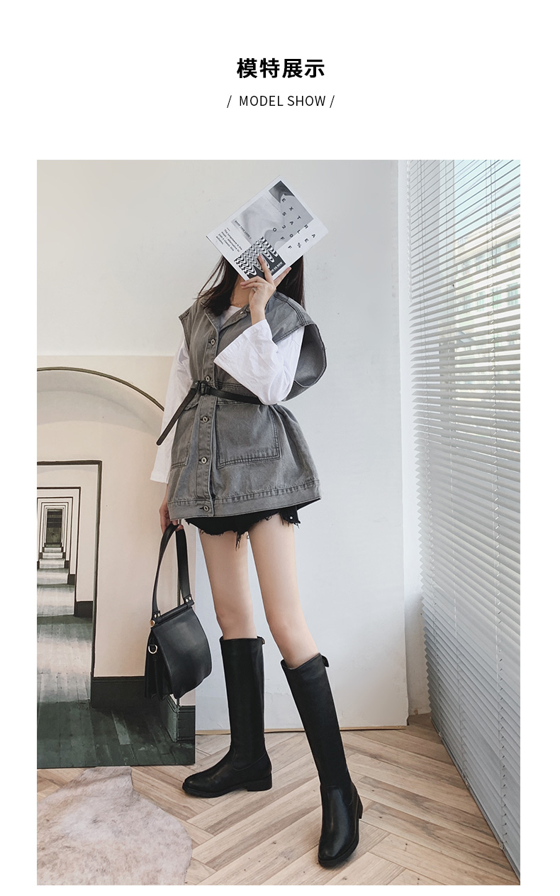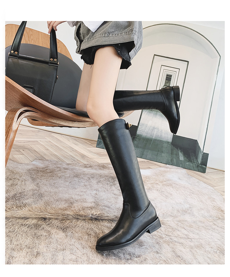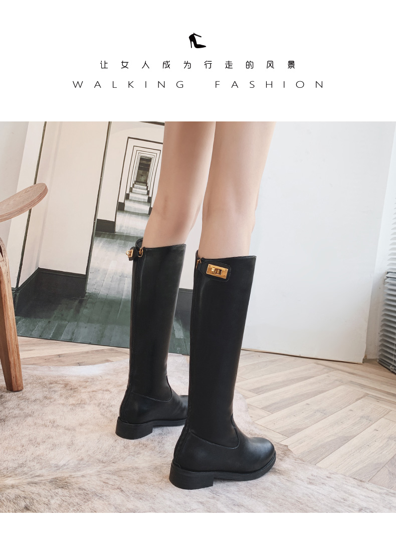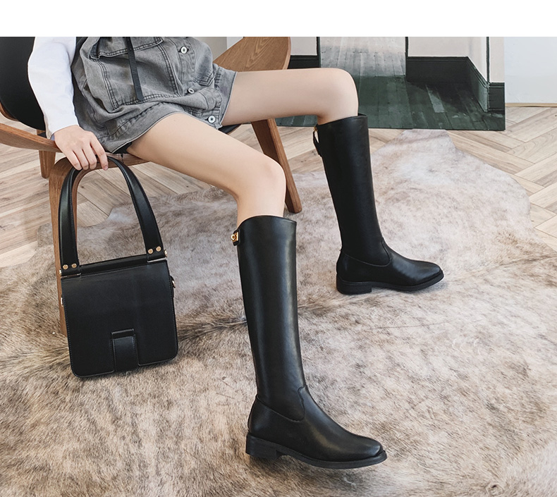 长筒靴女不过膝2019新款秋冬季网红小个子平底加绒骑士靴高筒靴女