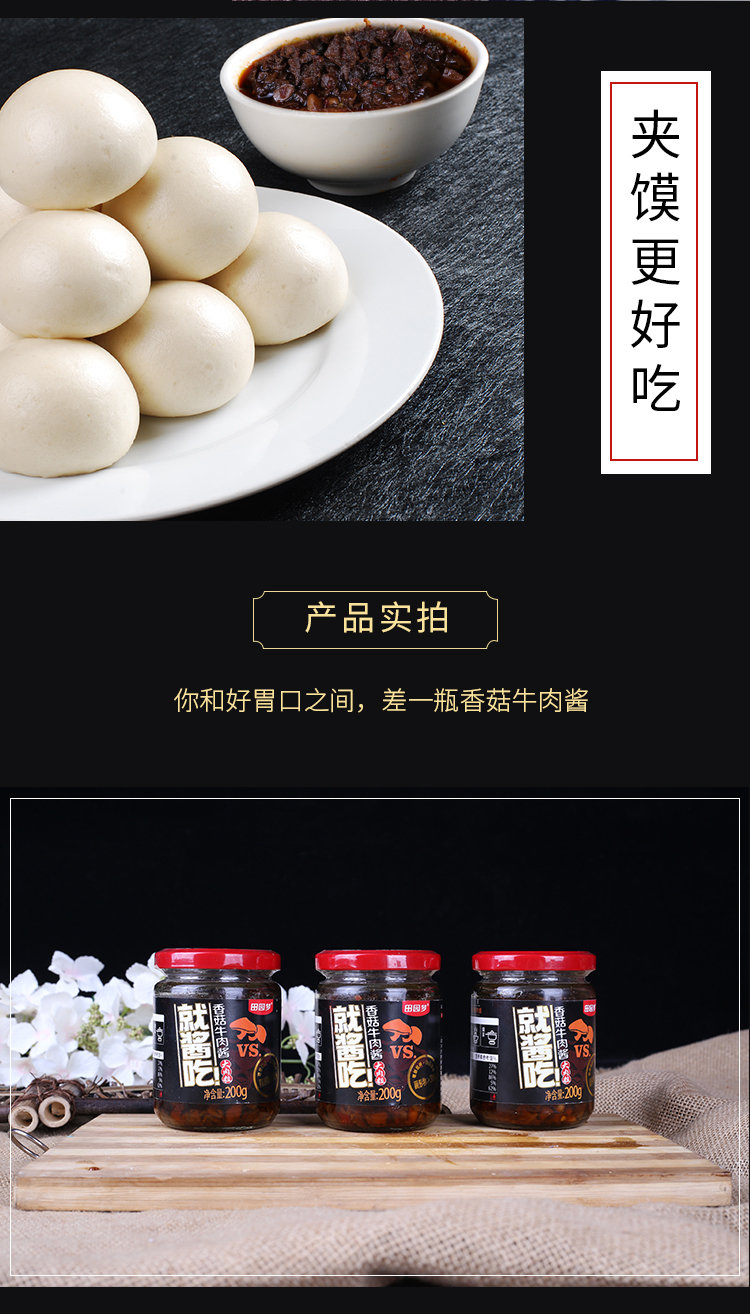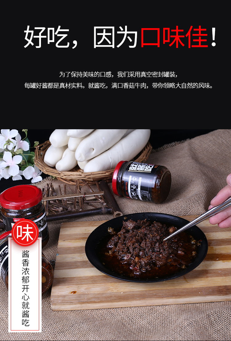 【2瓶装】香菇牛肉酱,大颗牛肉粒,真材实料,纯正好味,香辣爽口,鲜香美味,辣而不燥,香而不腻。严选材质,安全放心~