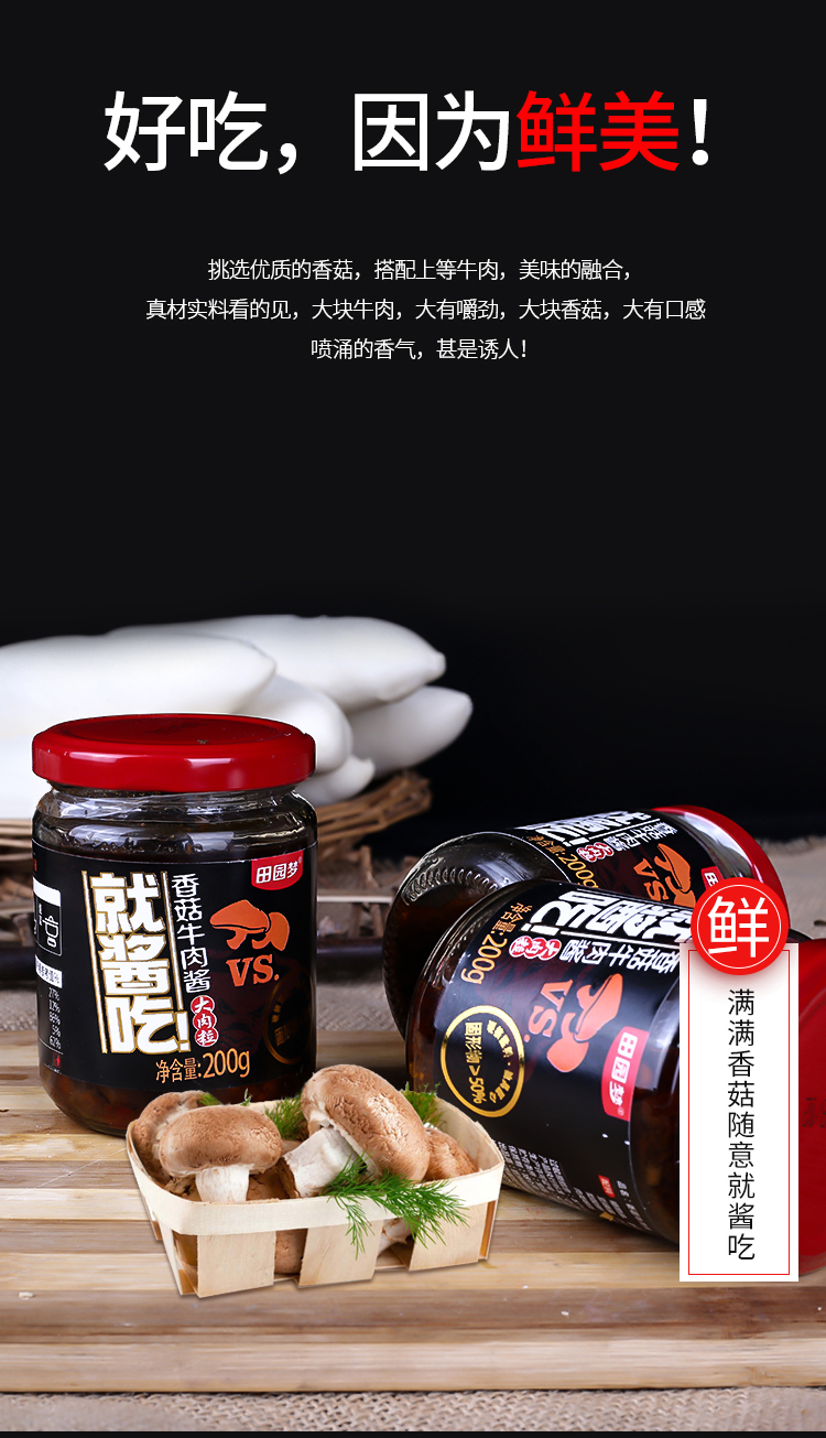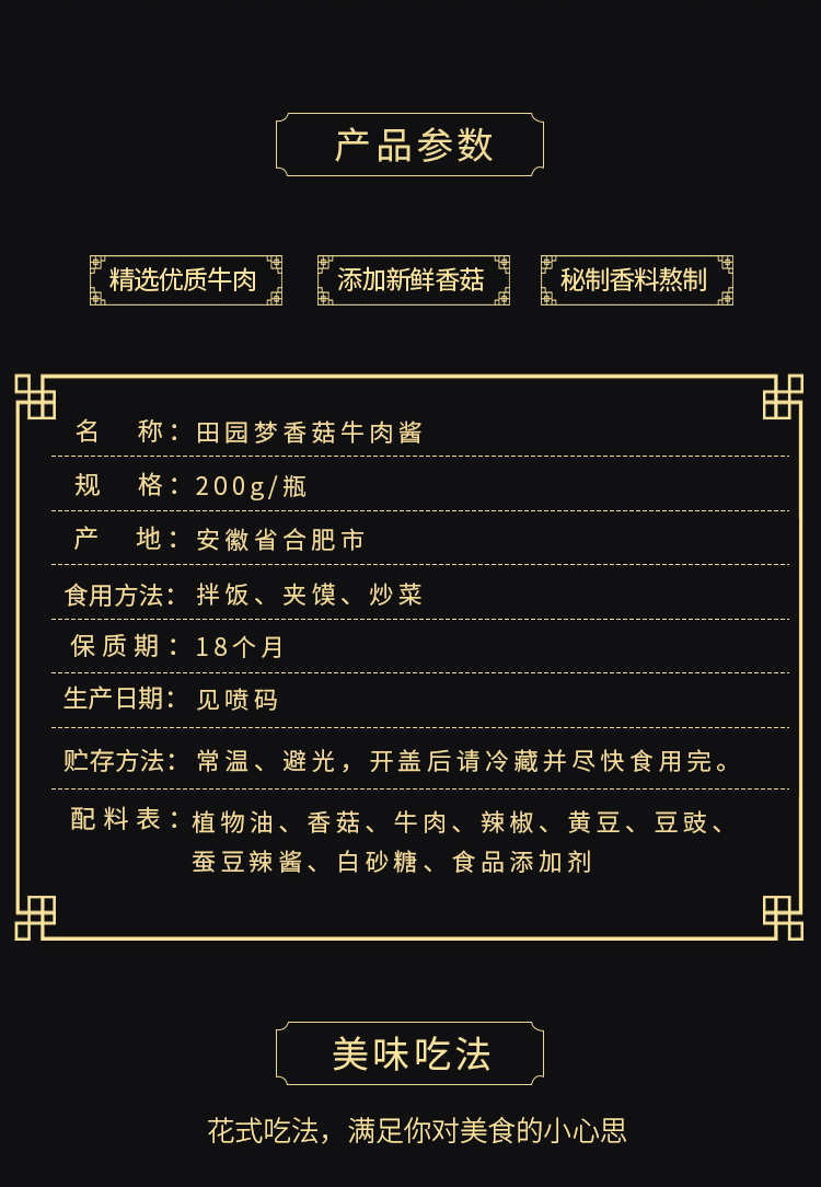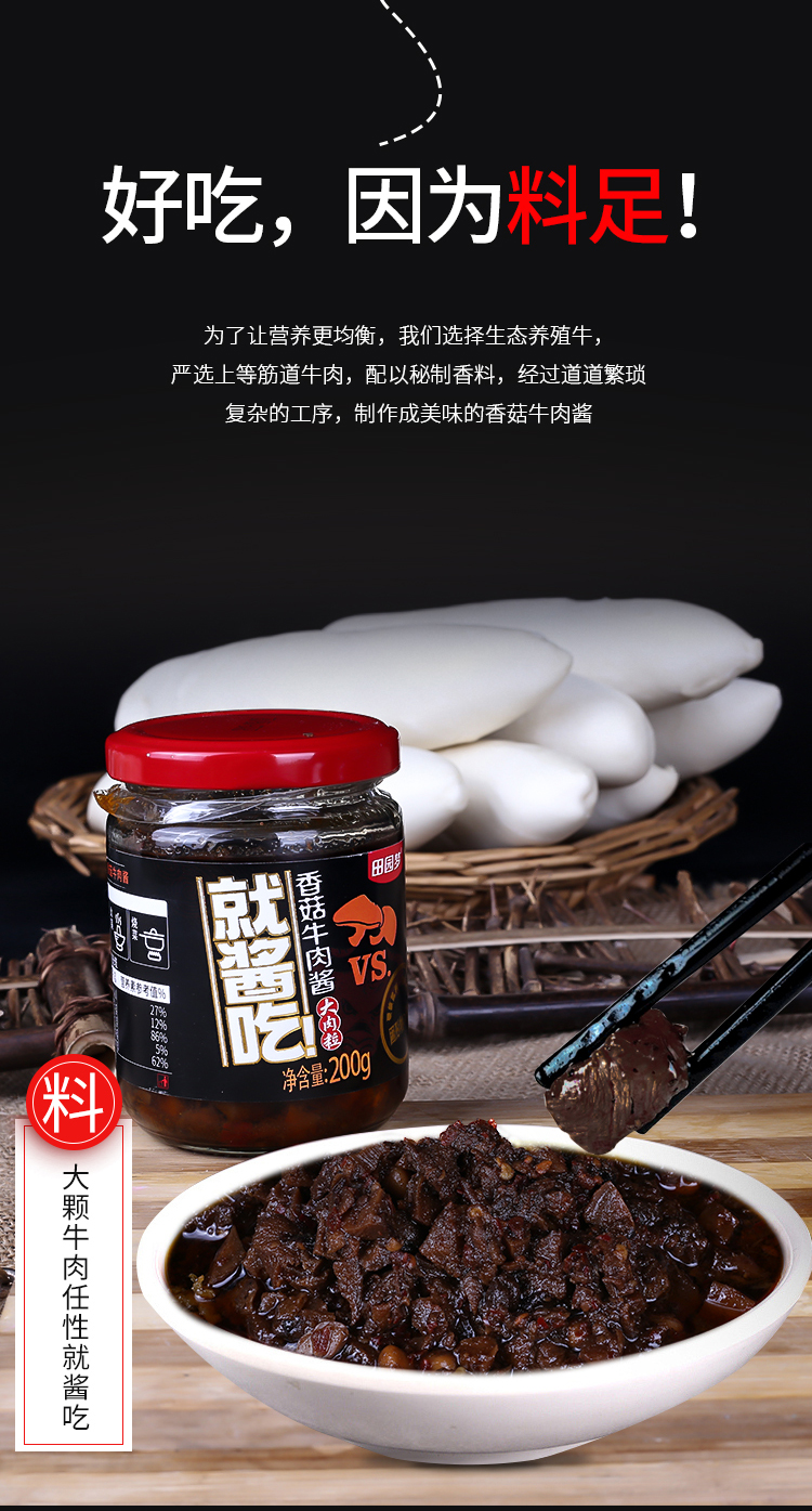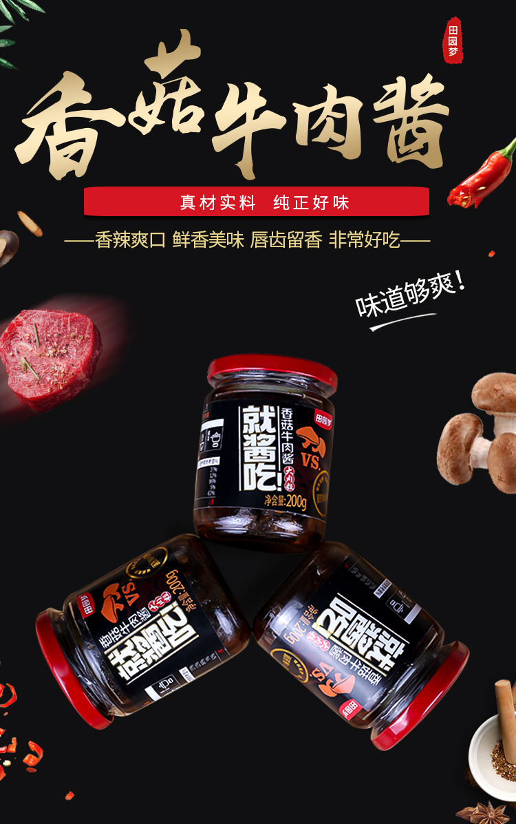 田园梦香菇牛肉酱拌饭面酱自制手工香辣暴下饭菜辣椒酱200g*2瓶装