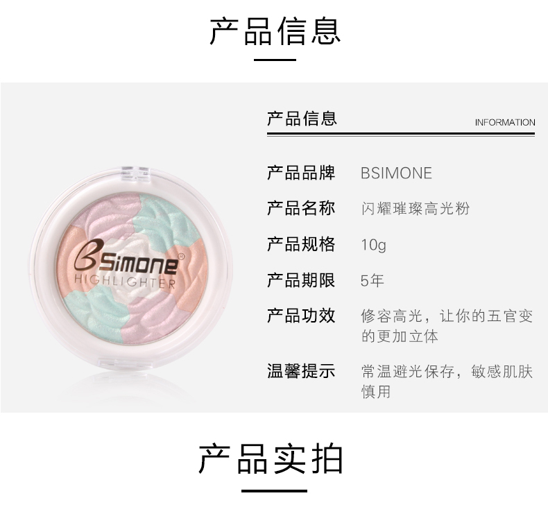 BSIMONE闪星高光,闪星上脸,自带焦点,一闪一闪够吸睛,欧美混血风,元气水光肌,一盘闪星轻松搞定,如镜面般细腻平滑,自带PS立体效果。【赠运费险】