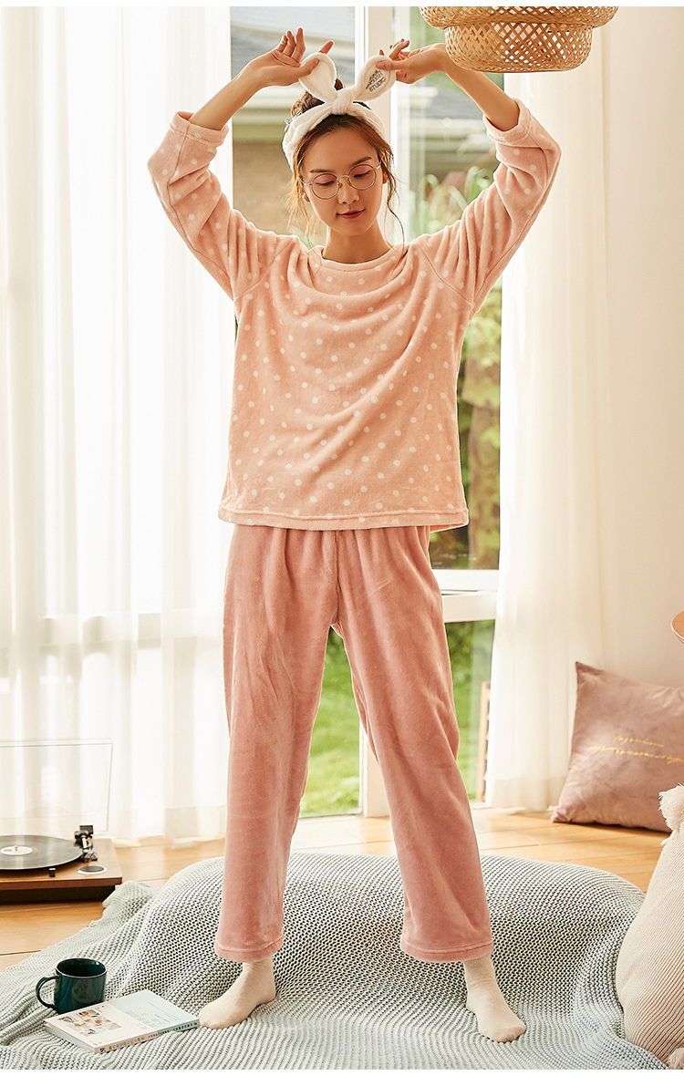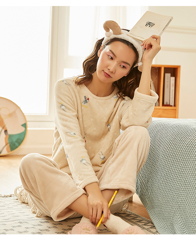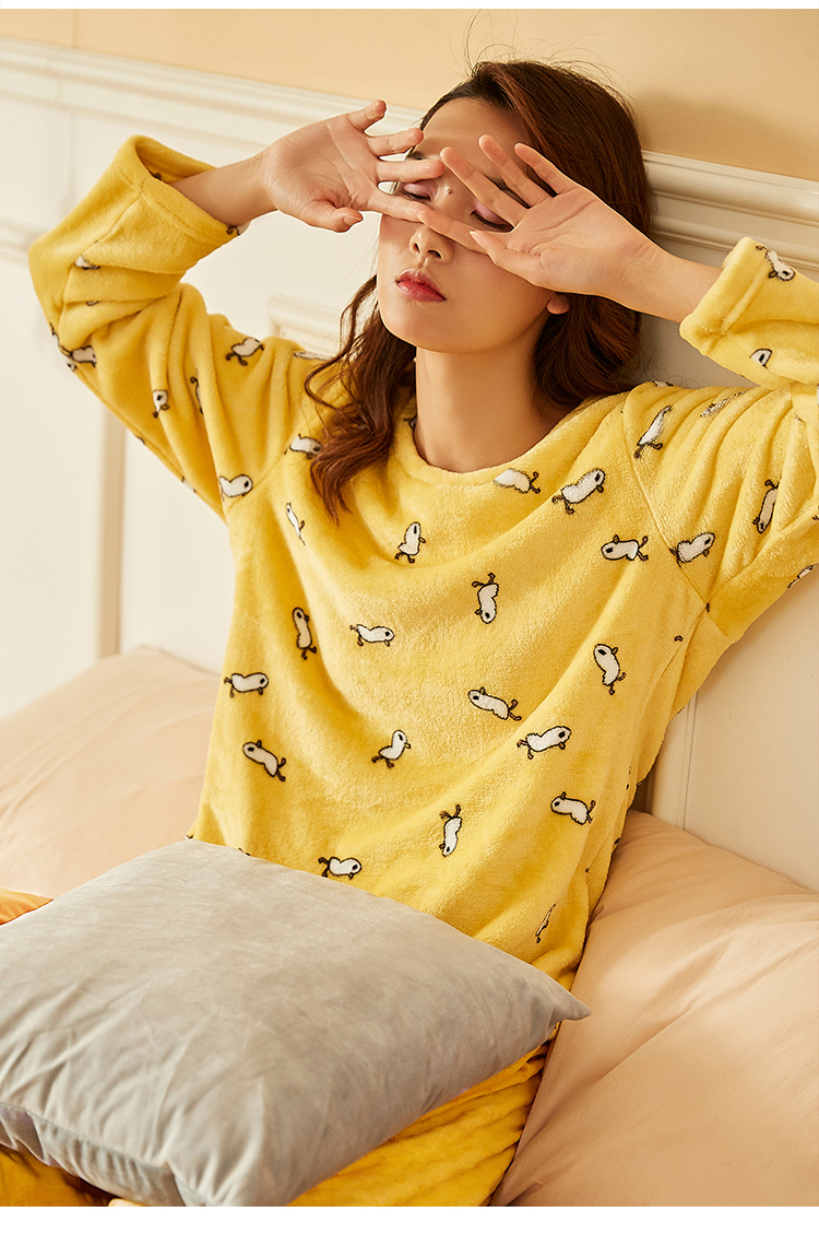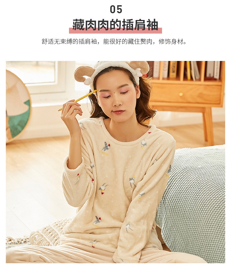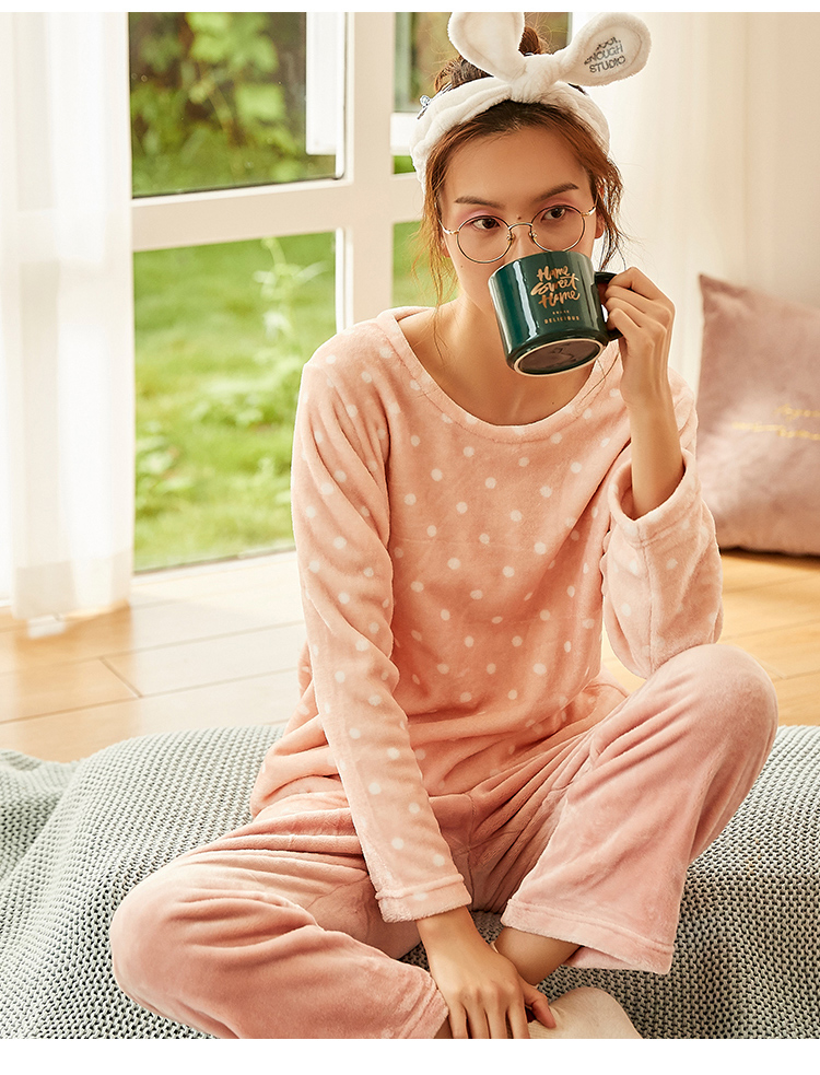 顶瓜瓜摇粒绒套珊瑚绒睡衣女秋冬家居服套装 法兰绒头温暖轻薄