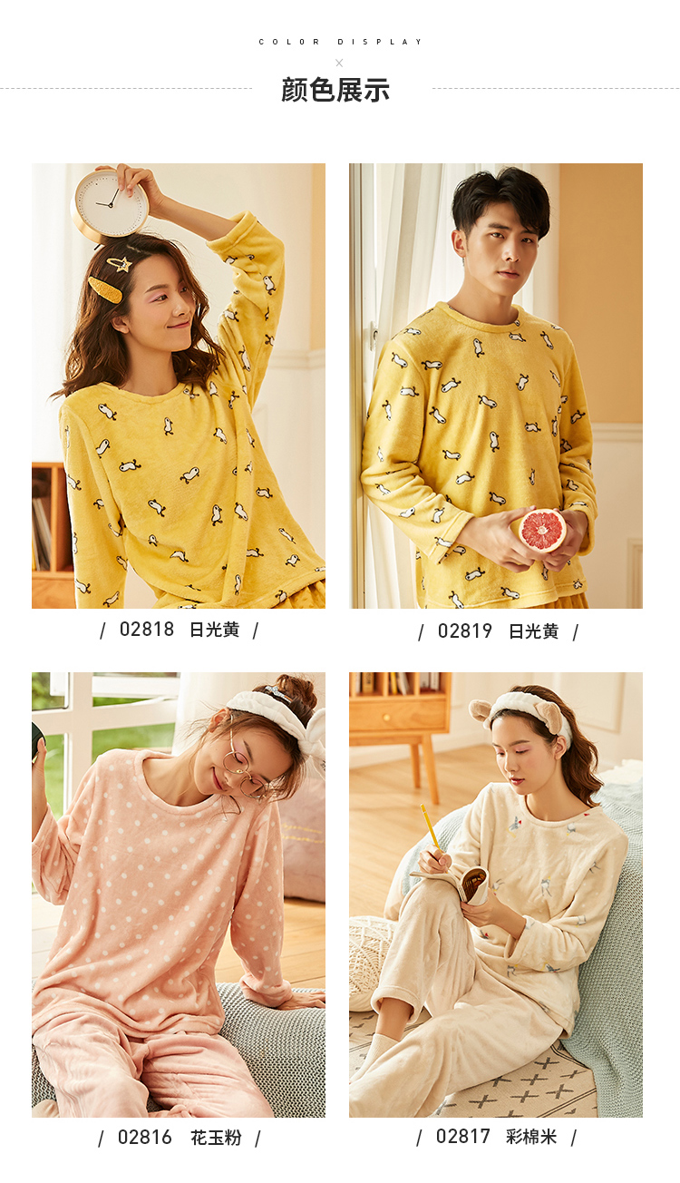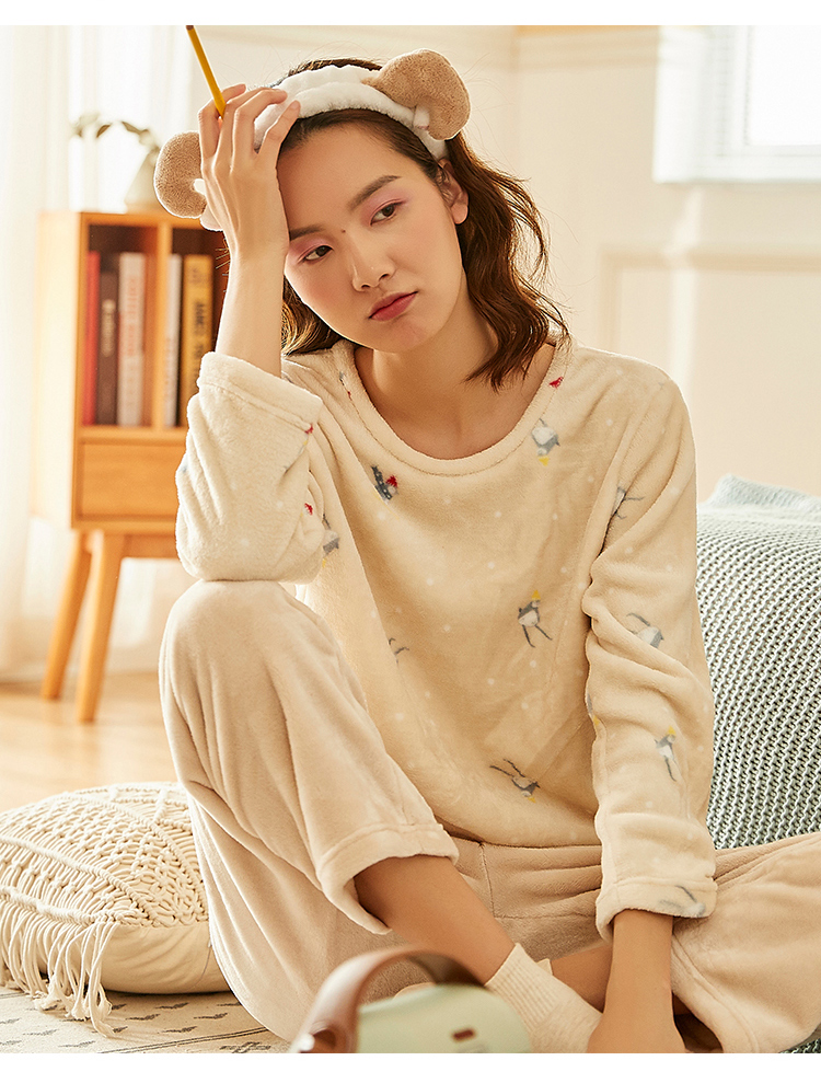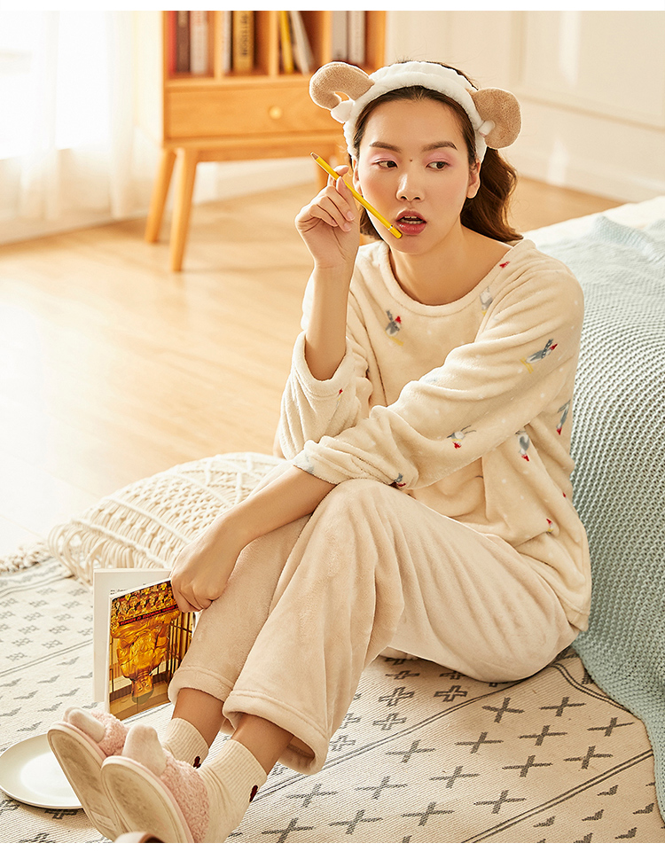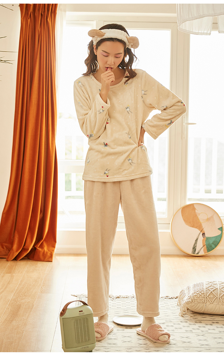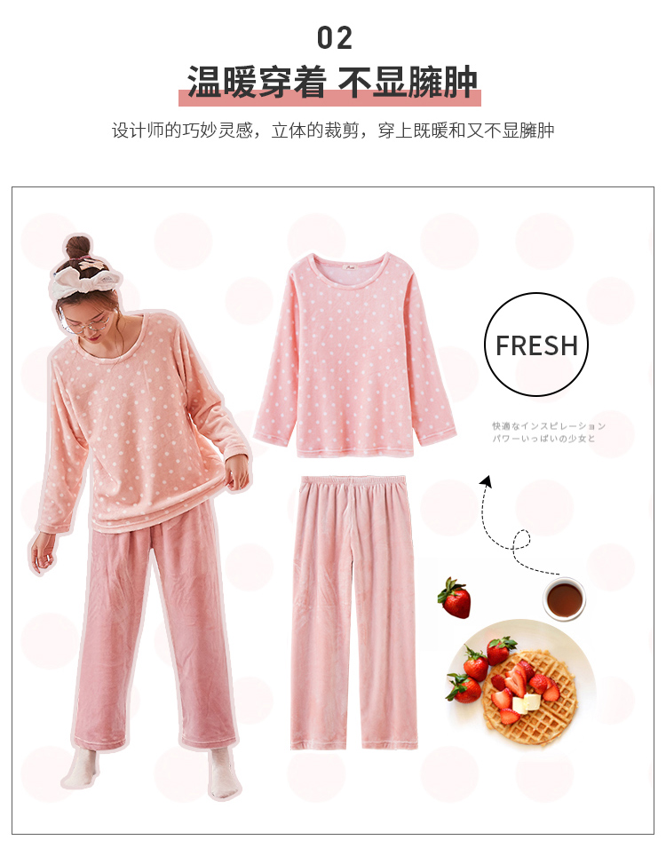 顶瓜瓜摇粒绒套珊瑚绒睡衣女秋冬家居服套装 法兰绒头温暖轻薄