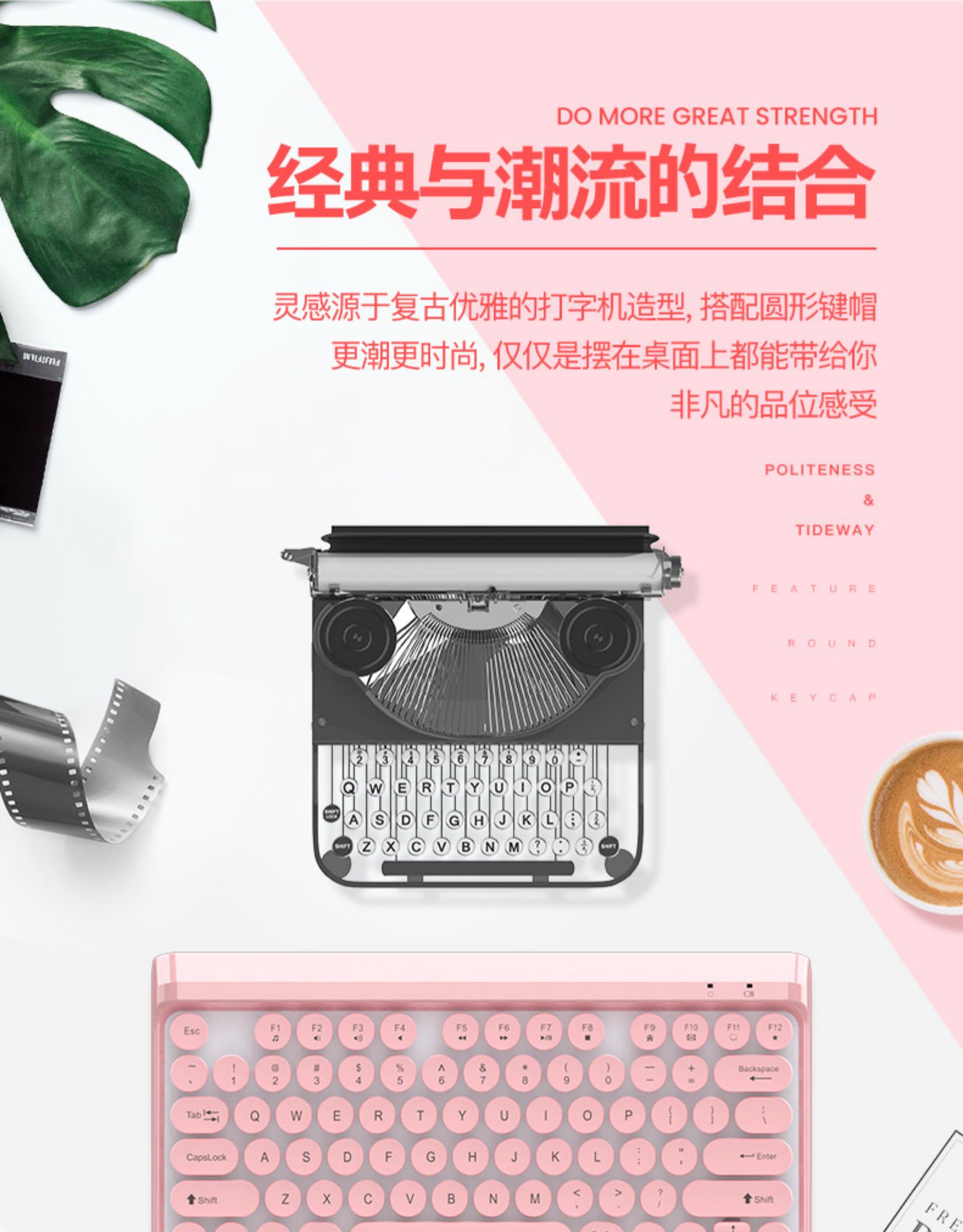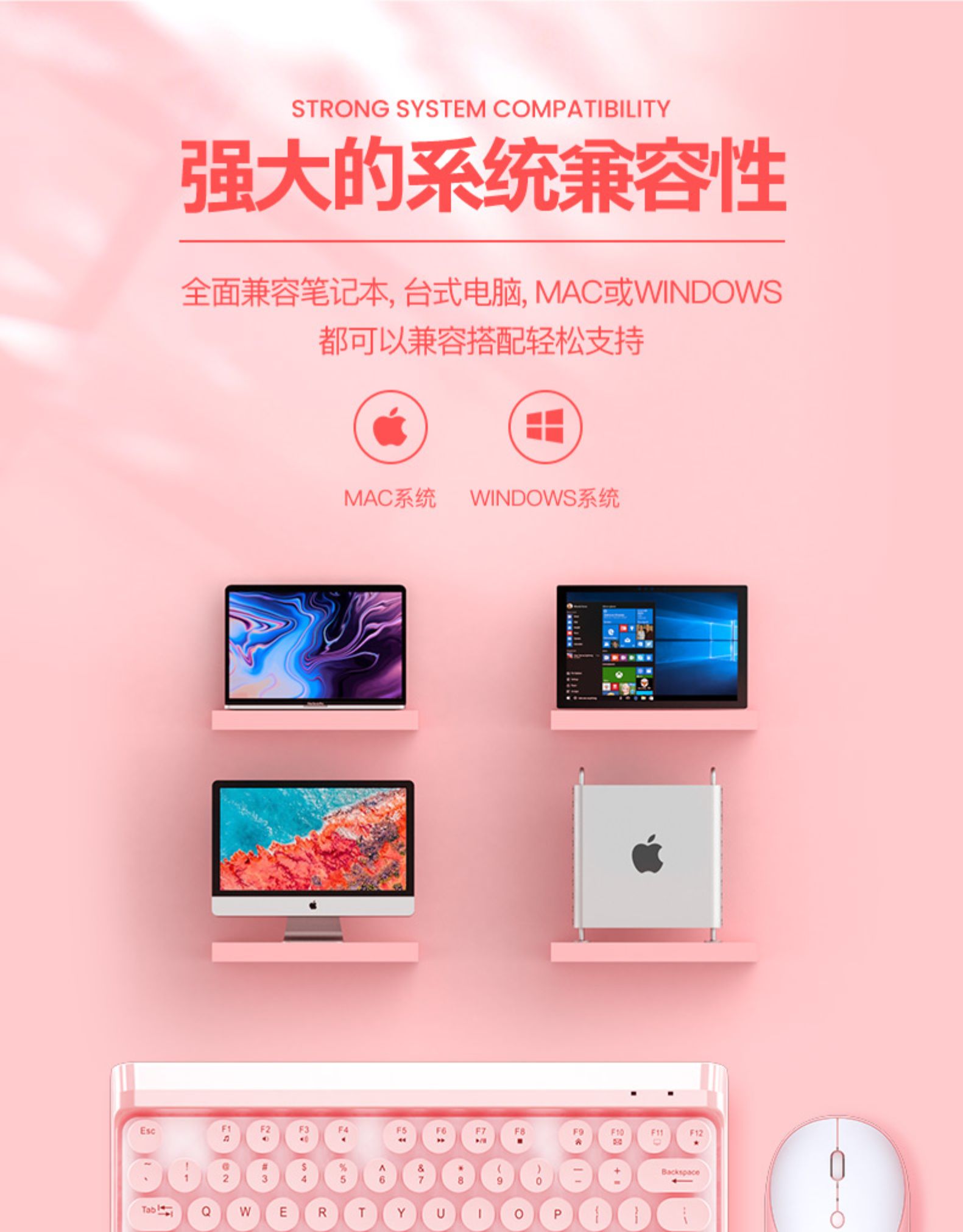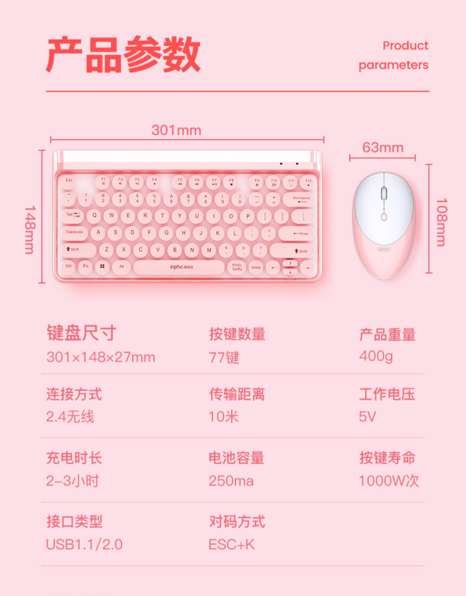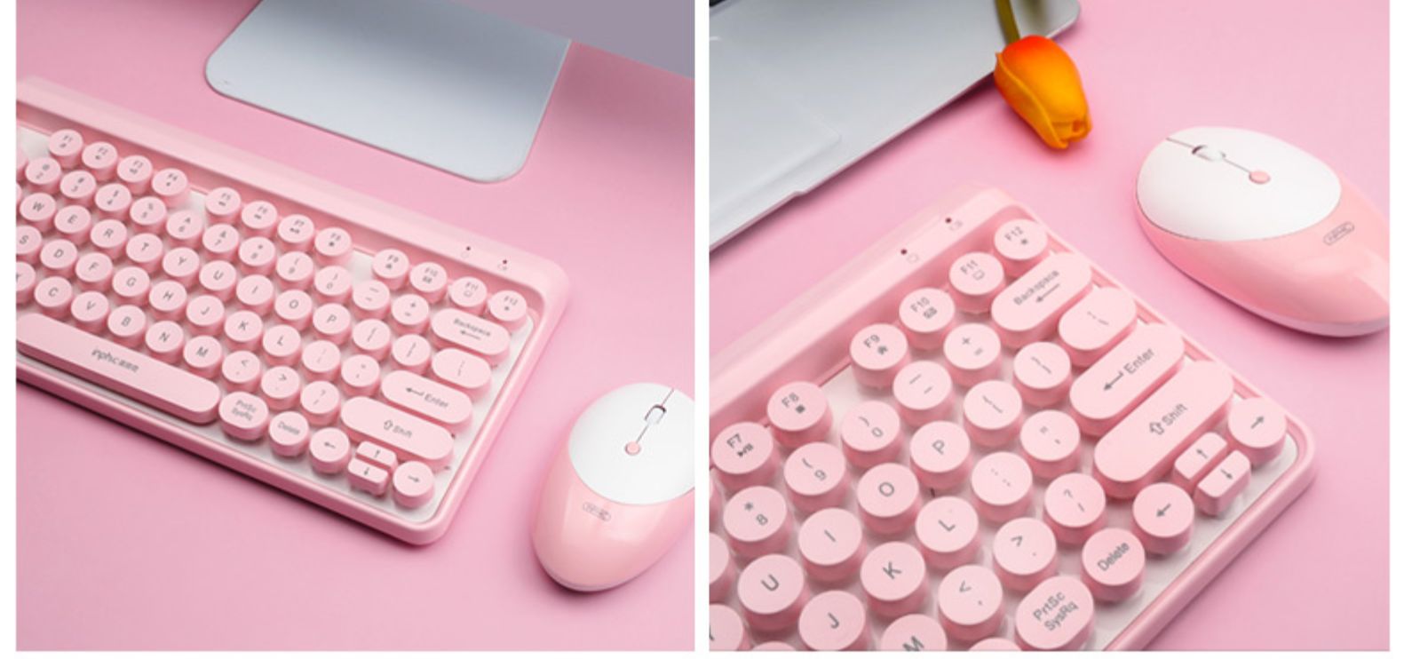 英菲克V798充电无线键盘鼠标套装电竞游戏无声台式电脑笔记本外接办公家用时尚朋克复古女生可爱粉色机械手感