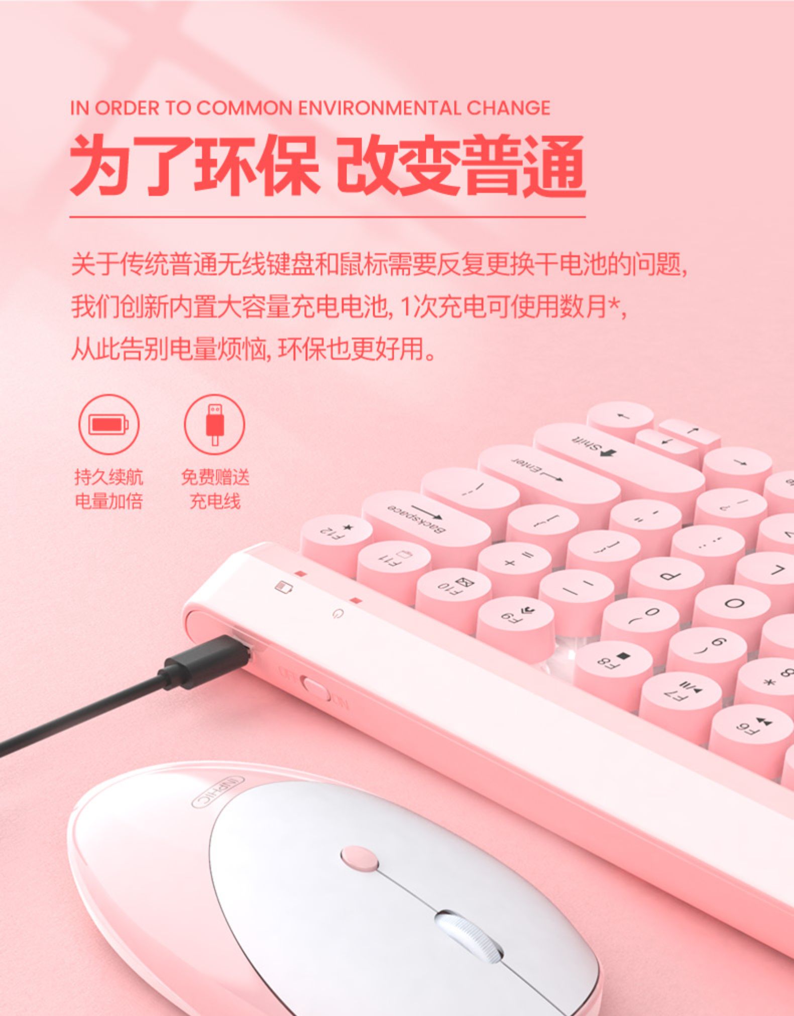 新品亏本推广!高颜值时尚无线键盘鼠标套装!键盘鼠标都能充电,再也不用换电池了!同类型套装商场至少要卖300块以上。