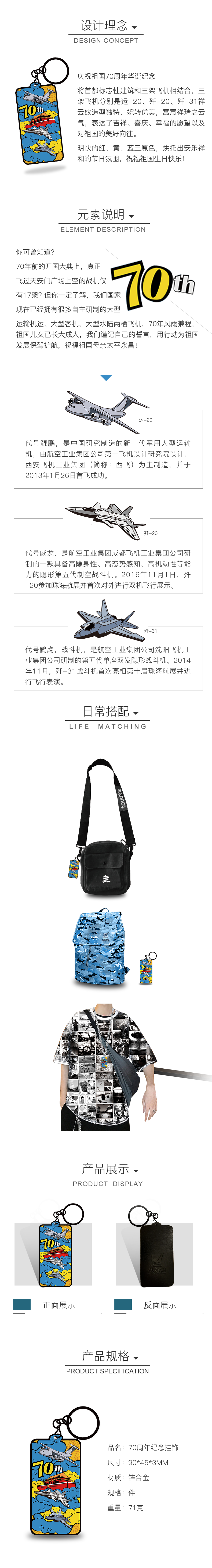 航空文创 70周年纪念挂饰挂坠金属钥匙扣背包挂饰创意礼品礼物