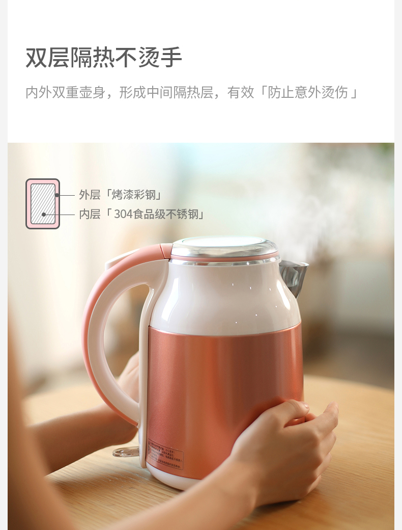 304不锈钢双层防烫1.8L大容量设计,物流很快,开水壶收到很满意,外观精美材质好,大小合适,烧水速度快,性价比高,买得值!