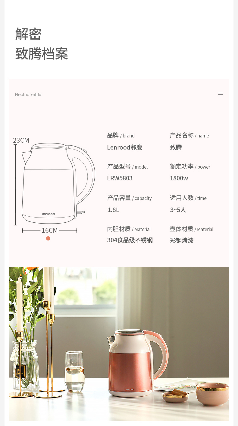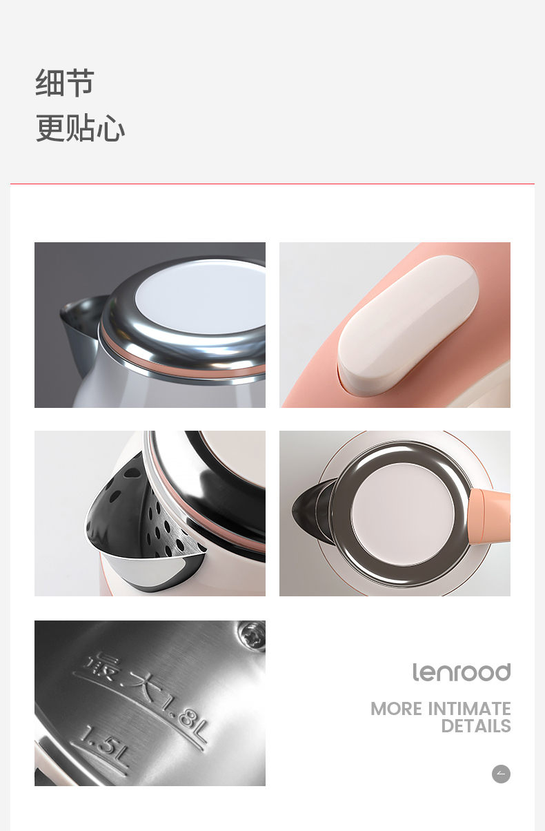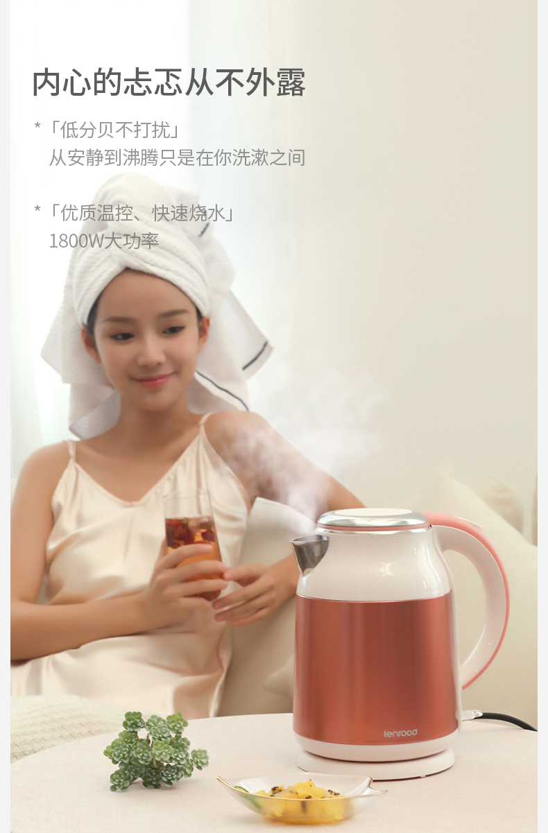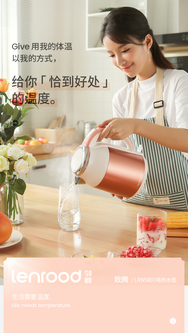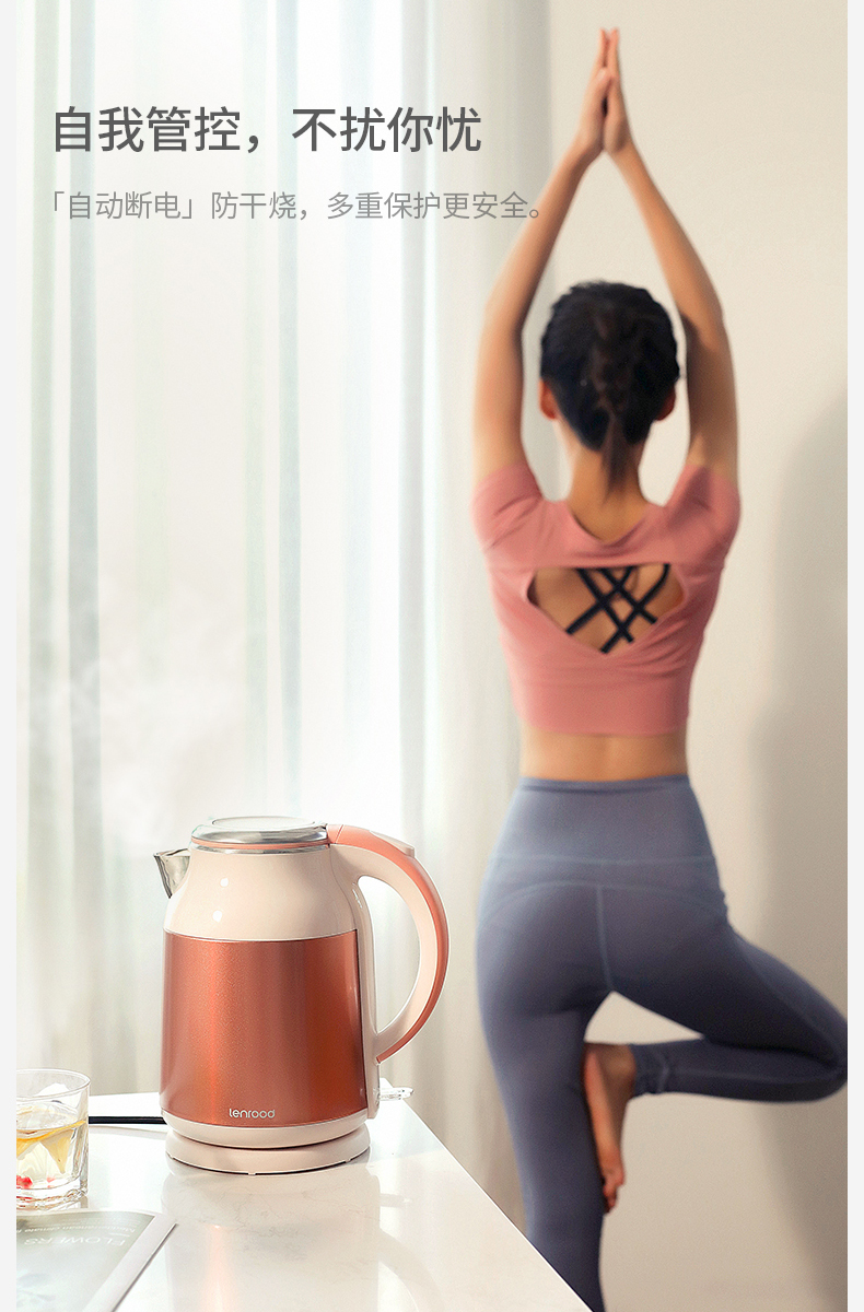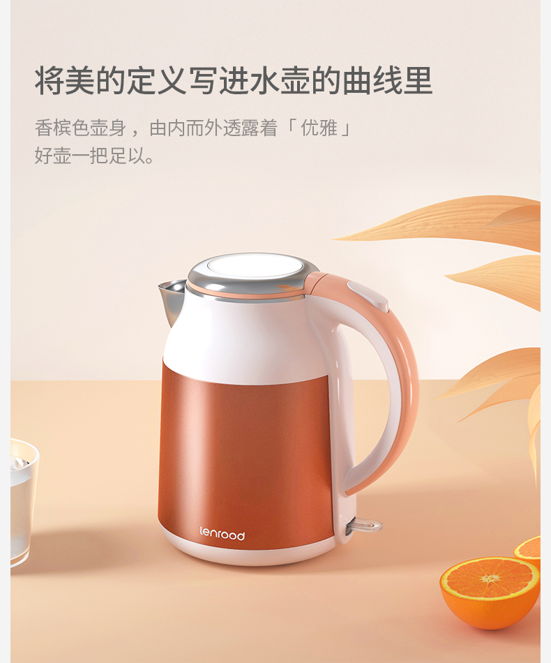 lenrood邻鹿快速烧水壶电热水壶304不锈钢开水壶保温水壶厨房防烫