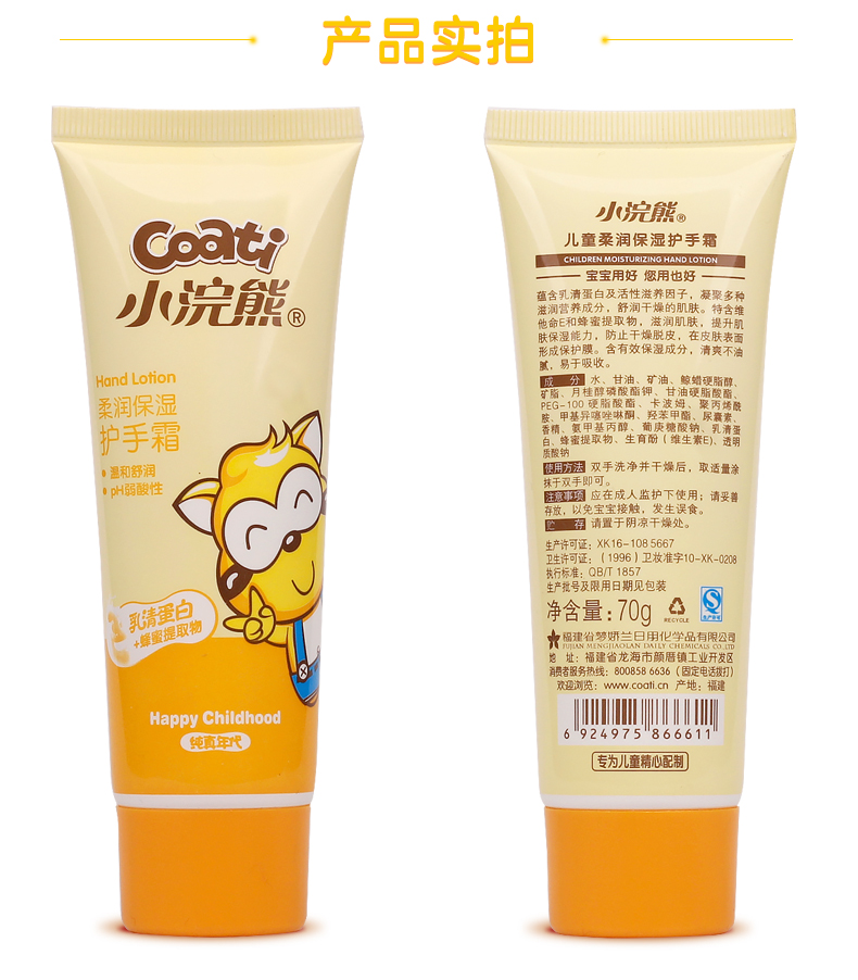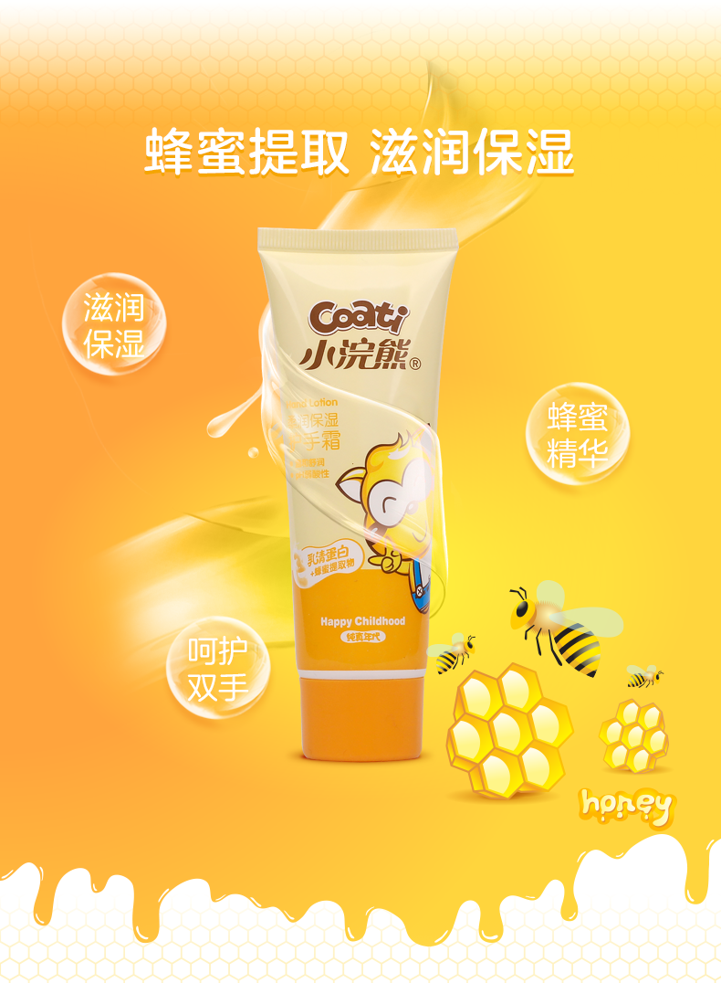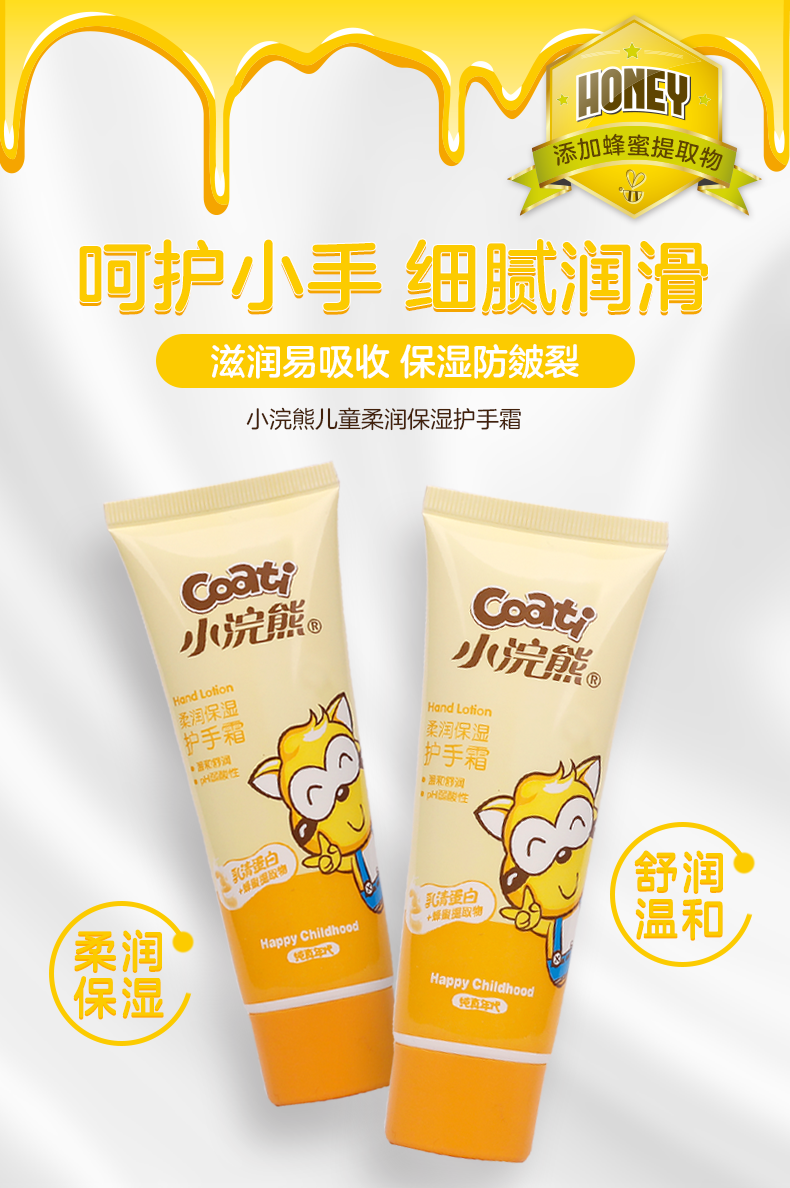 【3支】小浣熊儿童护手霜,滋润保湿补水,植物萃取,柔润滋养,食品级原料配方,专为保护儿童娇嫰的肌肤研制,蜂蜜精华护手霜,滋润易吸收,呵护小手