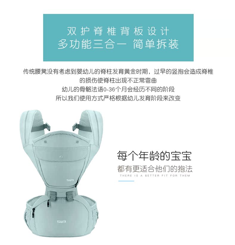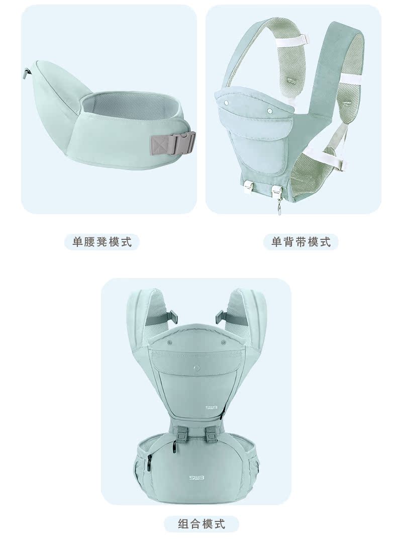 四季通用抱娃神器,一套顶三套,婴儿背带+腰凳+腰凳防风帽,前抱式婴儿背带,储物空间大,可放纸尿裤、奶瓶等,可折头设计,轻便省力,预防O型腿,多种背法,满足宝宝不同阶段的需求!