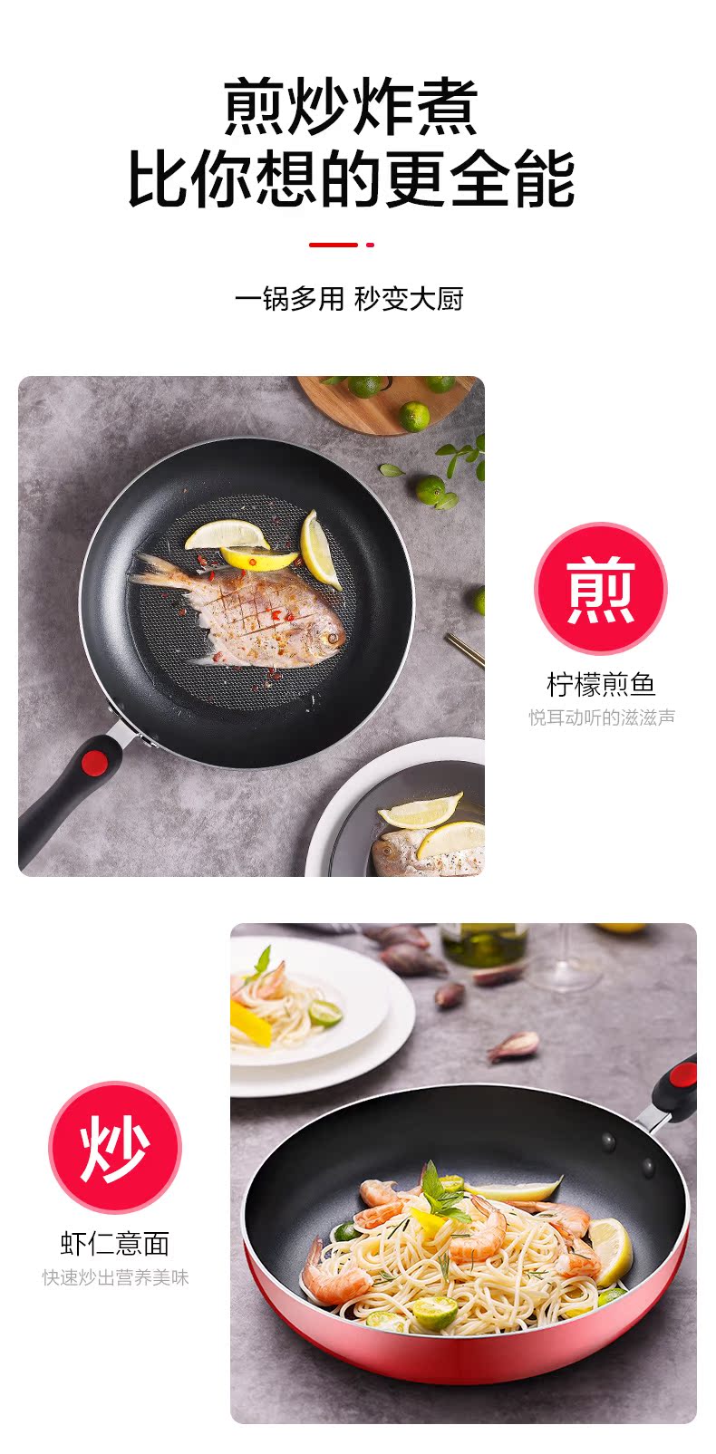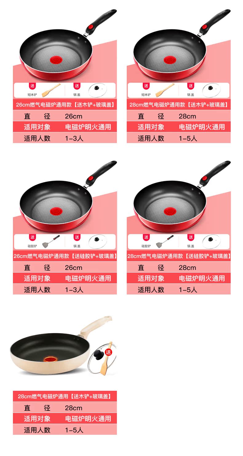 平底不粘锅,家用多功能,火红点智能控温,加厚锅底,耐磨防刮,轻烟少油,电磁炉燃气灶通用,粘锅白送,买就送锅盖+木铲。