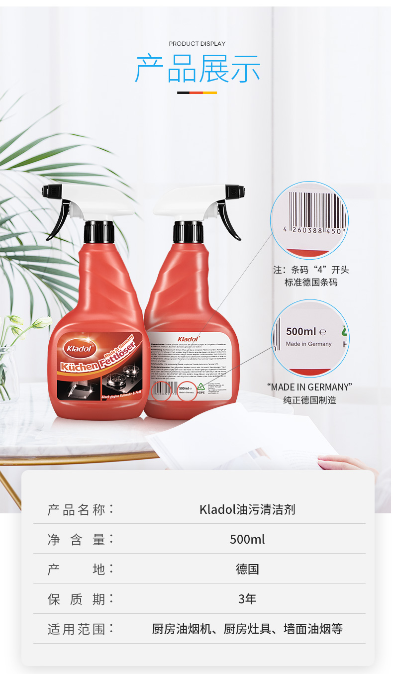 德国进口抽油烟机清洁剂泡沫一喷净强力除油污神器厨房清洗剂3瓶