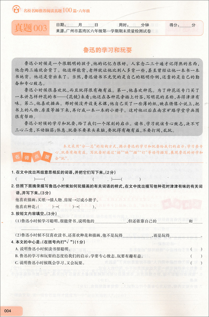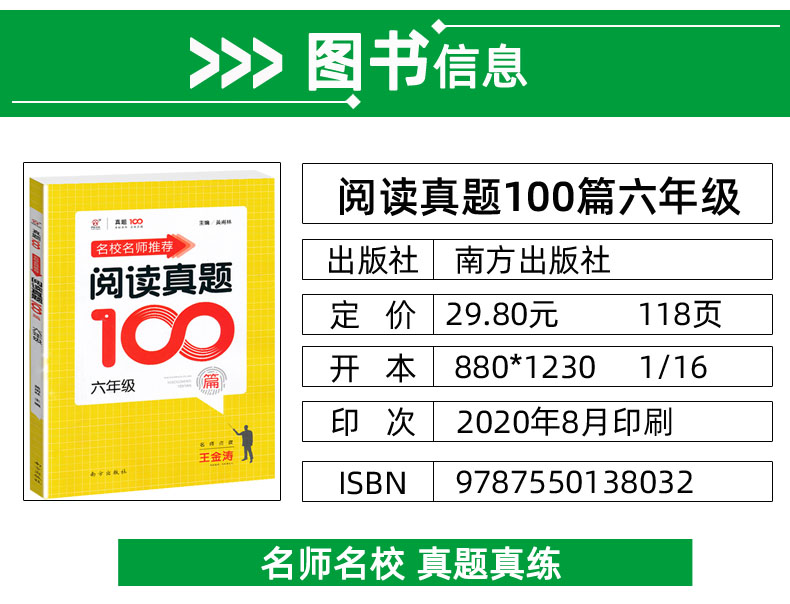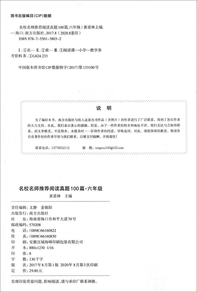 2019名校名师推荐,六年级阅读真题100篇,语文同步练习册测试题拓展,集中突破,强化训练,开发孩子阅读写作能力!