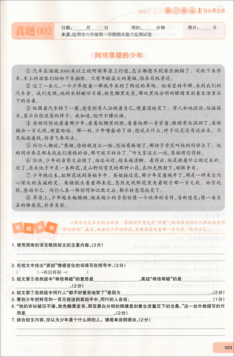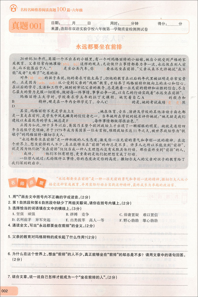 2019名校名师推荐小学生语文阅读真题100篇六年级6年级 新课标版小学语文阅读提升训练小学生课外书阅读理解课堂内外名校名师讲解