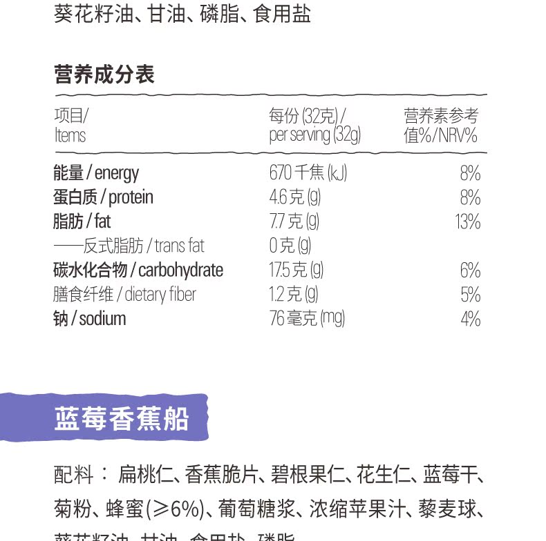 棒吧混合风味坚果棒4支装 每日零食健身代餐能量棒