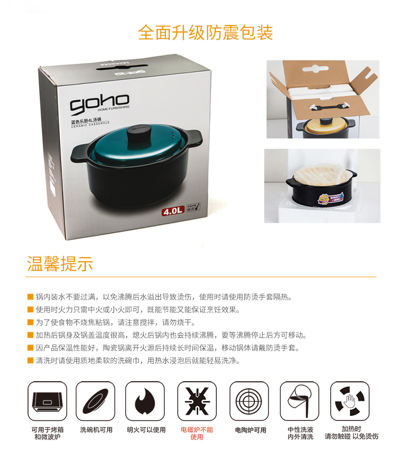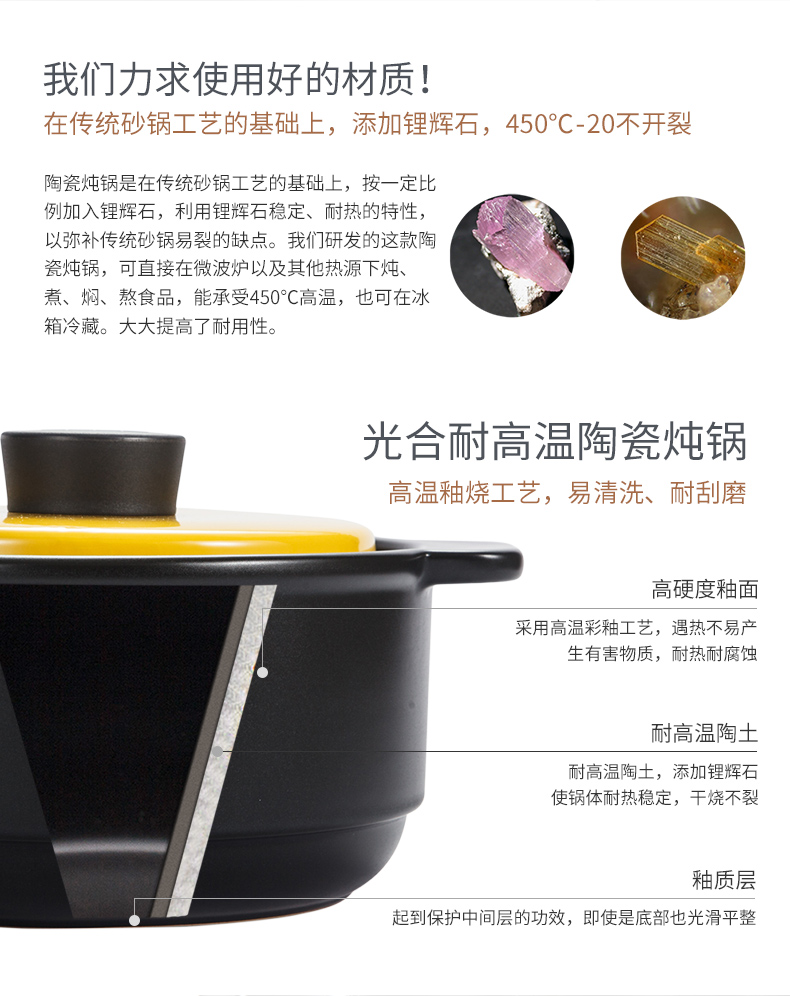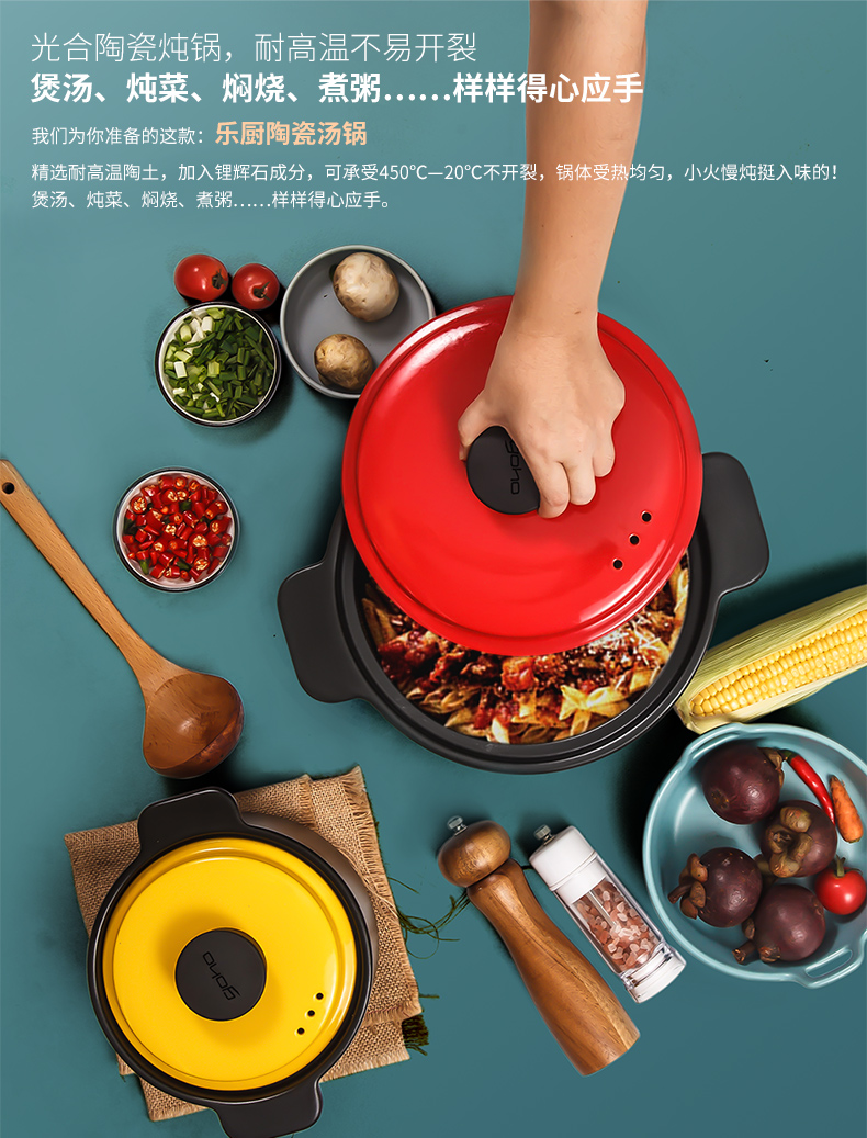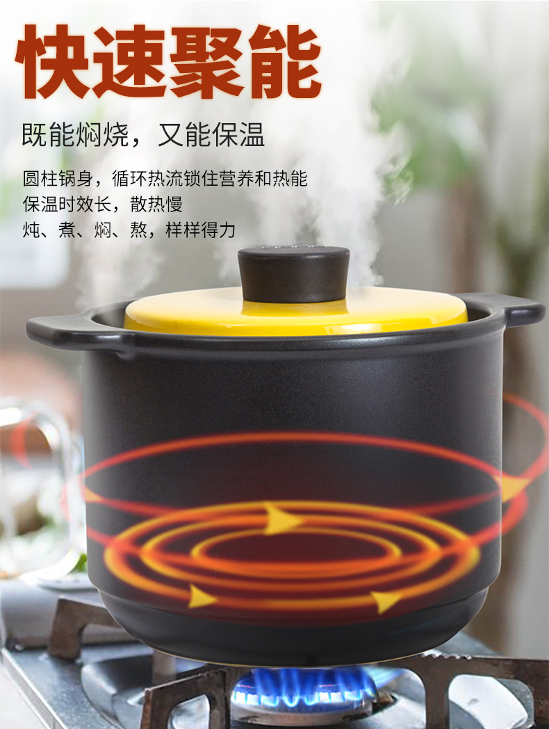 工艺烧制,耐高温,导热稳定!不糊底易清洗,焖煲煮炖一锅搞定