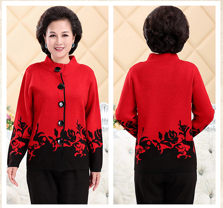 中老年情侣羊毛衫男女大红色本命年羊毛外套福字宽松加厚羊绒衫