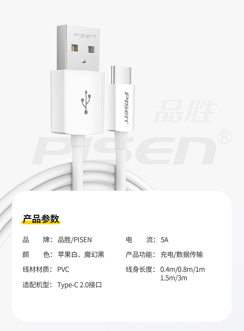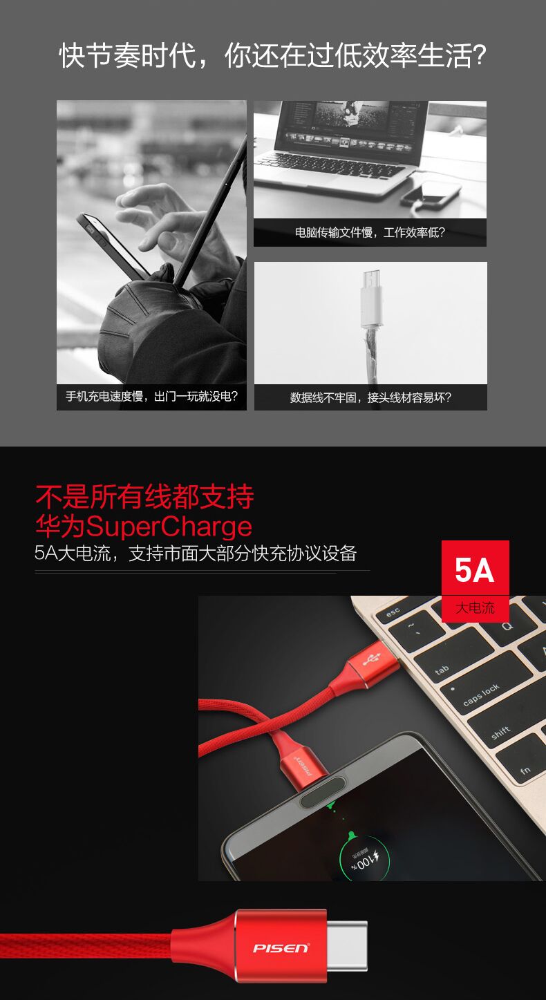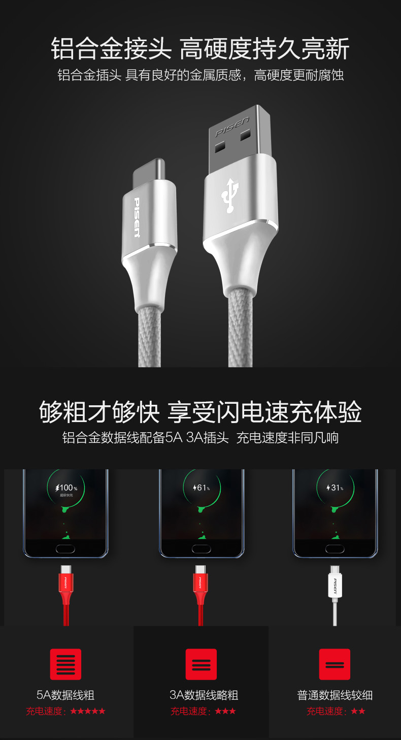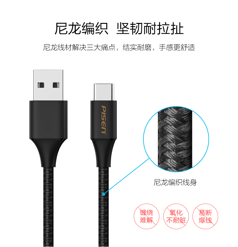 品胜type-c数据线小米6华为P30手机P20荣耀三星 乐视充电器线快充
