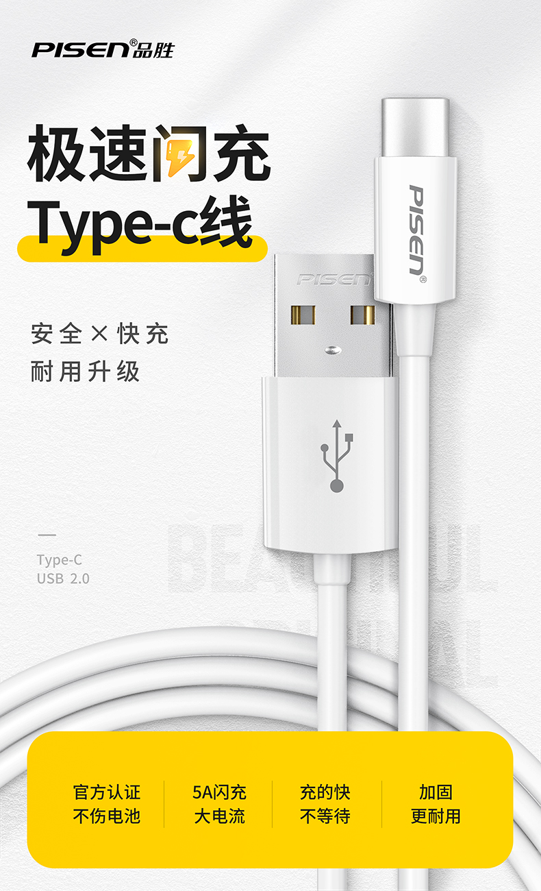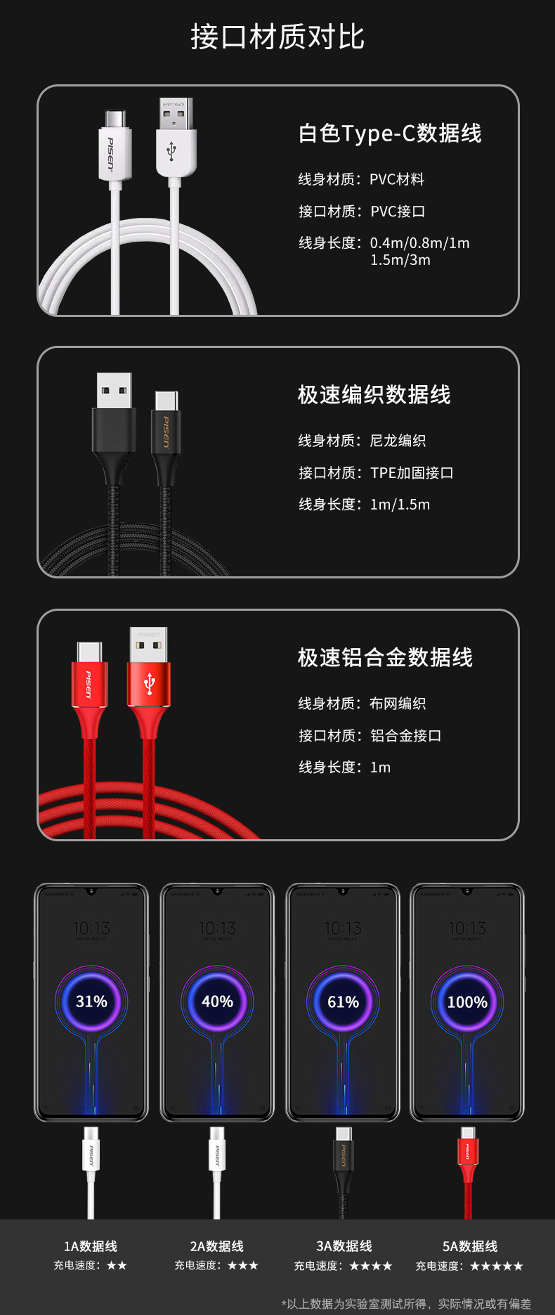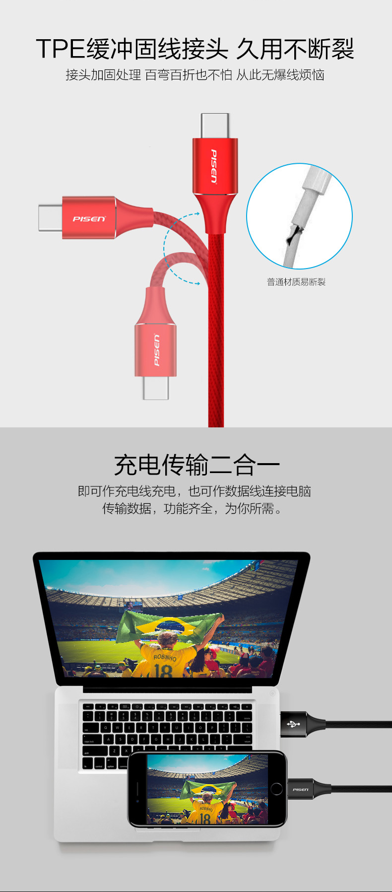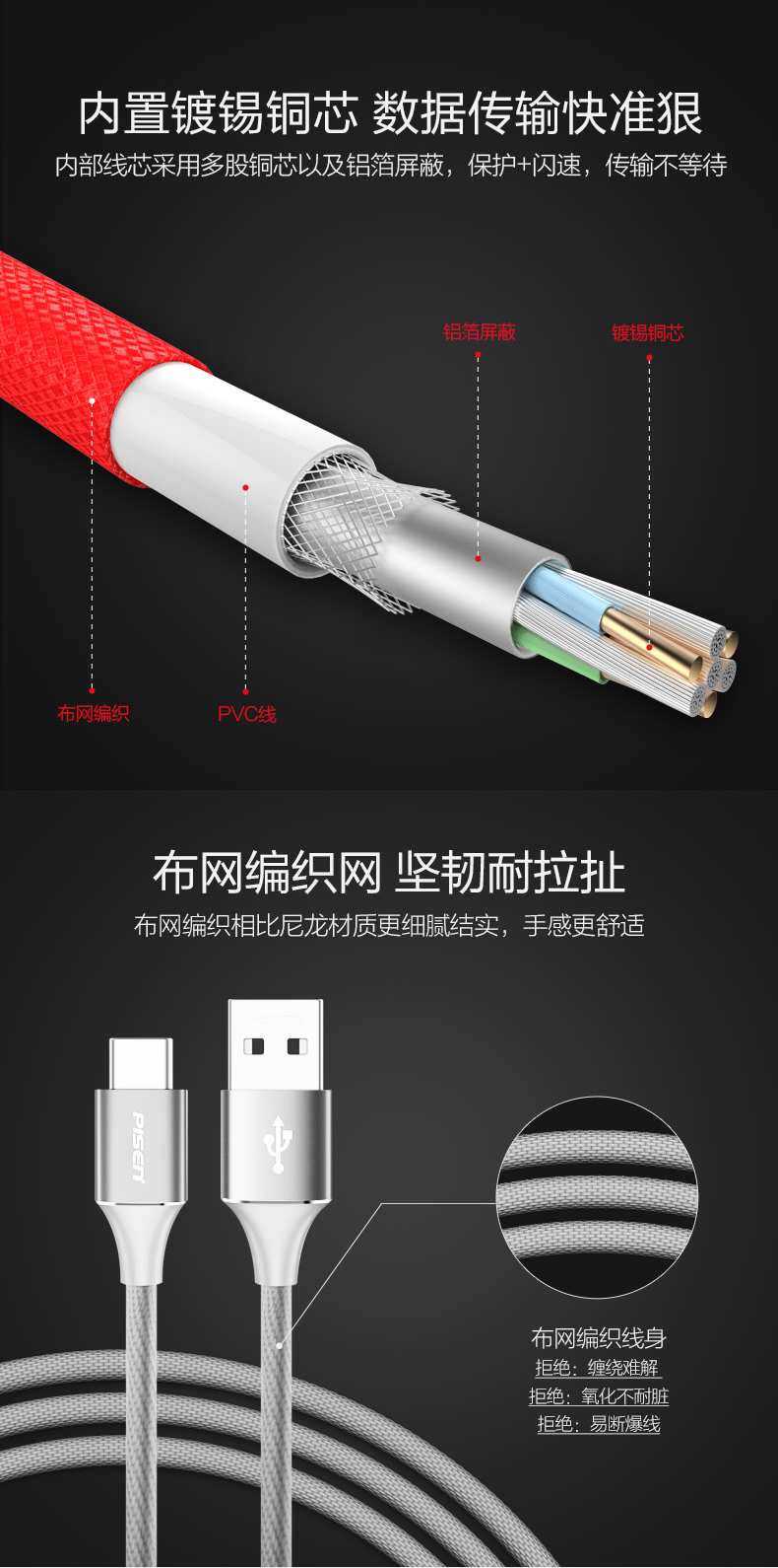 品胜type-c数据线小米6华为P30手机P20荣耀三星 乐视充电器线快充