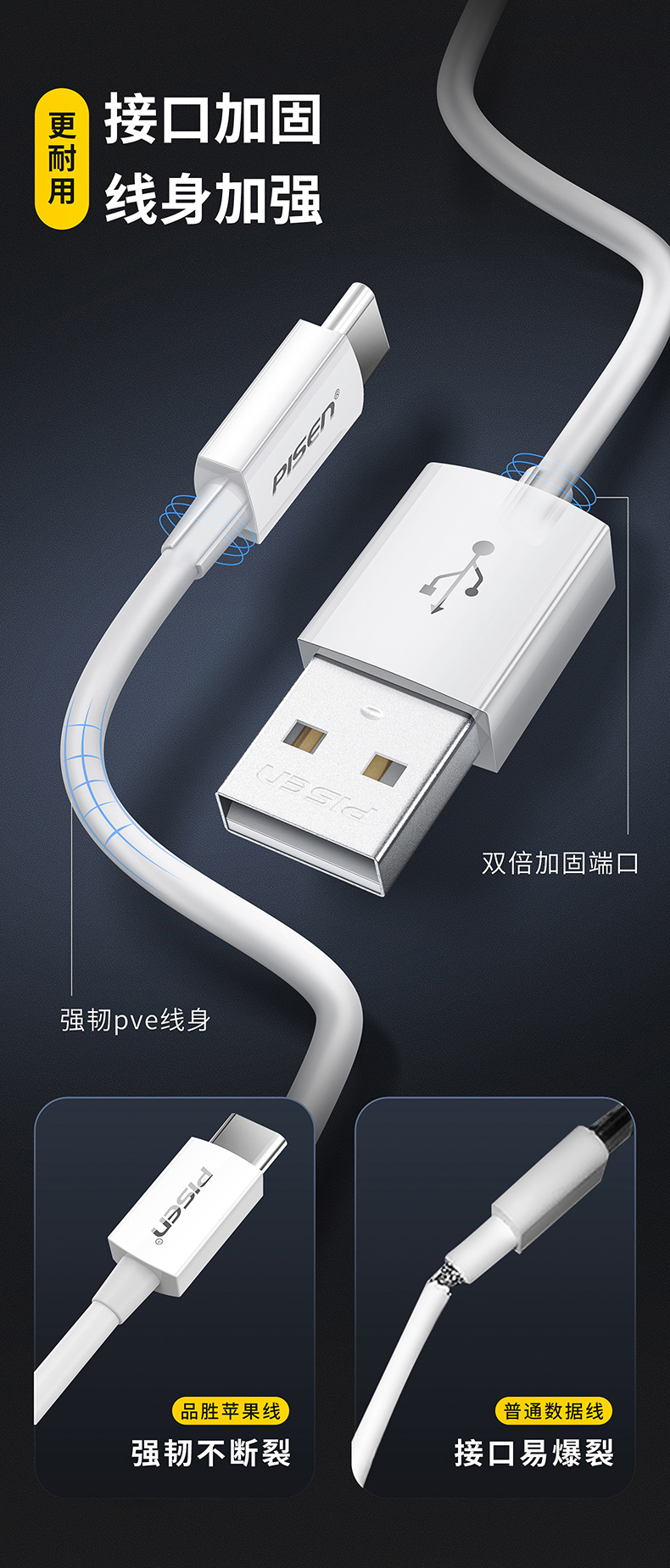 品胜官方专卖店,双面可用,不分正反,2A快充,强韧线身,抗拉耐扯,抢到就是赚到!【赠运费险】