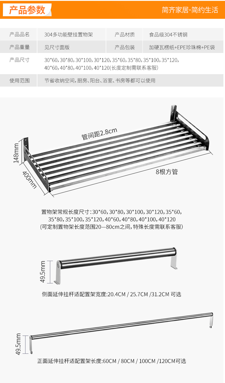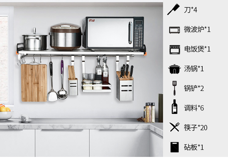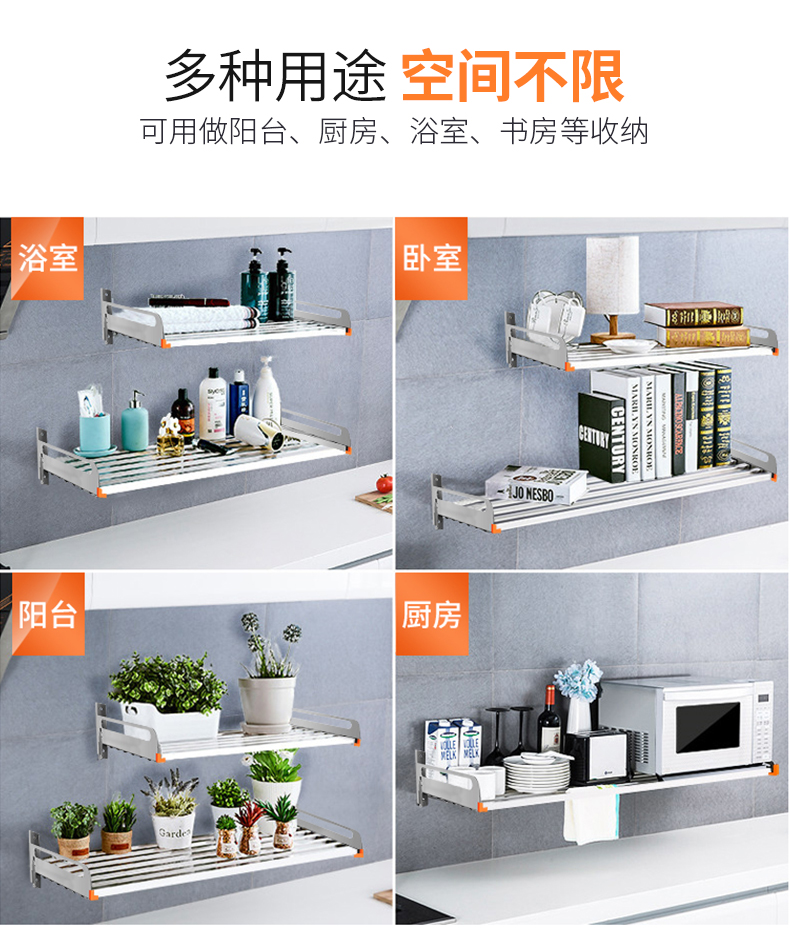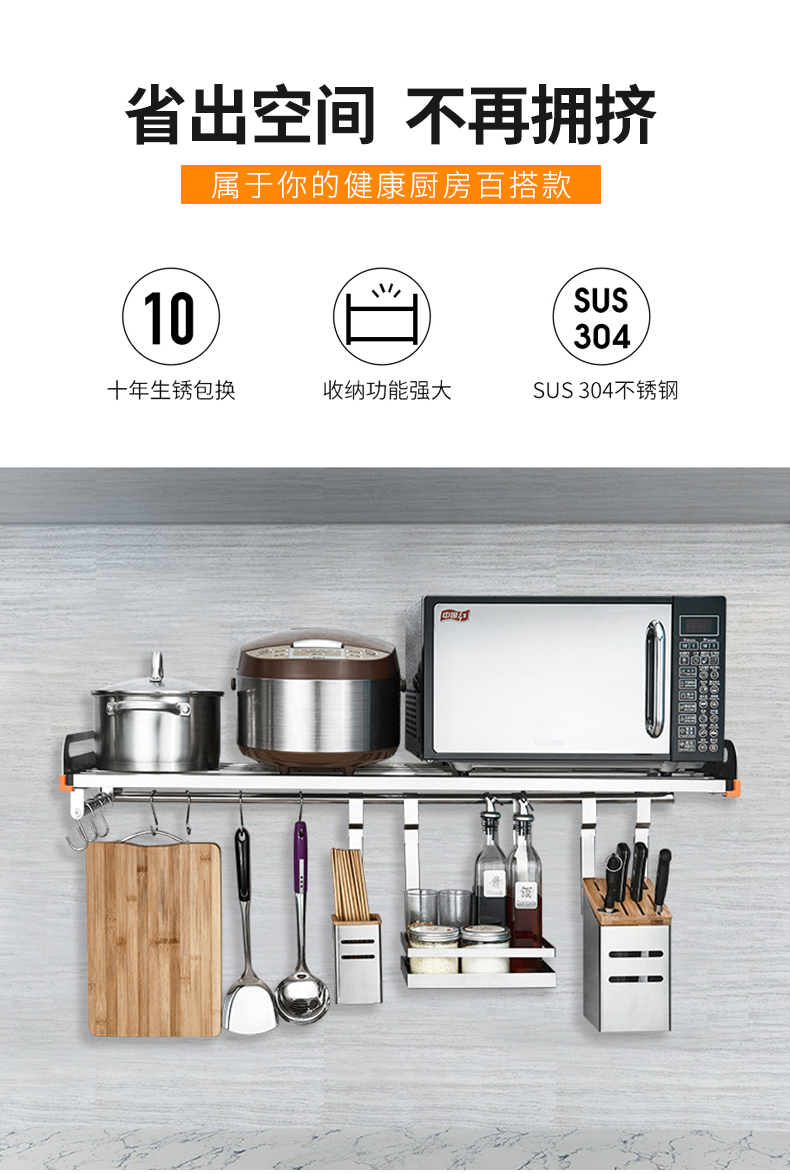 304不锈钢微波炉置物架壁挂式墙上挂件厨房烤箱收纳储物架收纳架