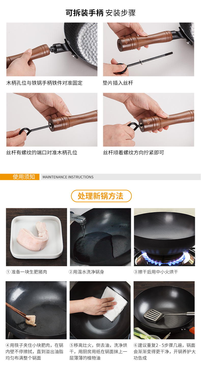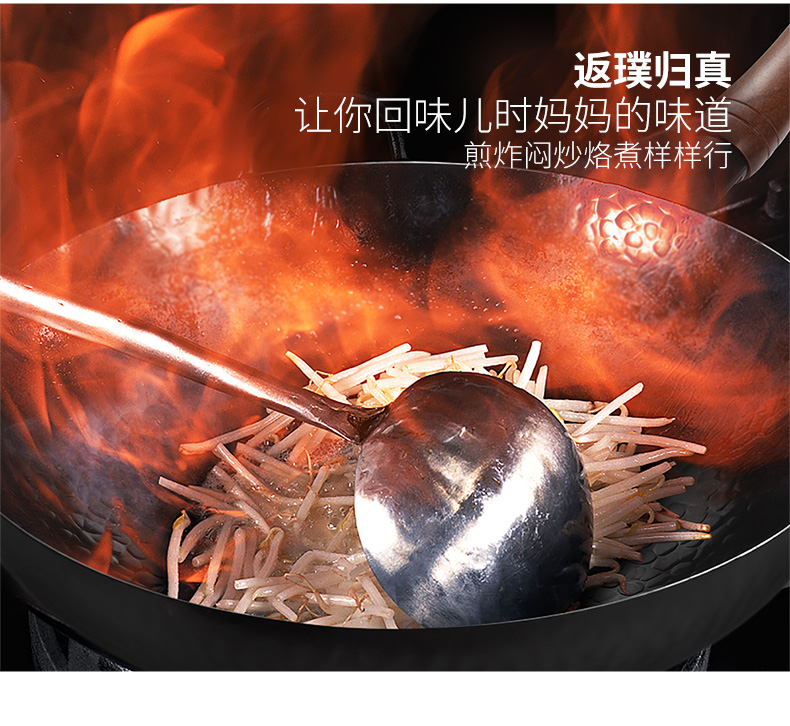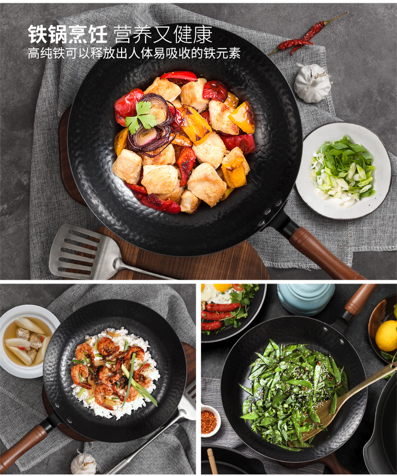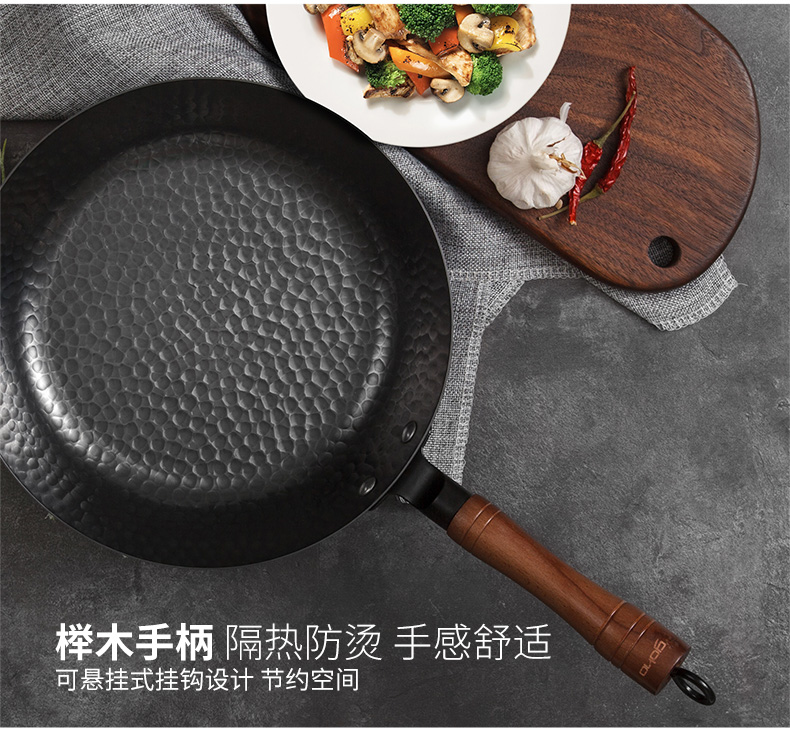 熟铁炒锅铁锅煎锅平底锅无涂层电磁炉适用28cm铸铁锅燃气灶适用