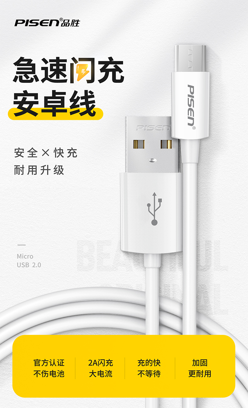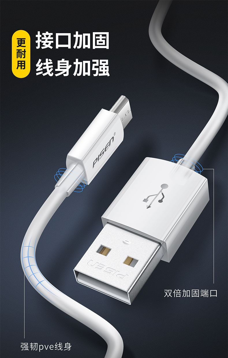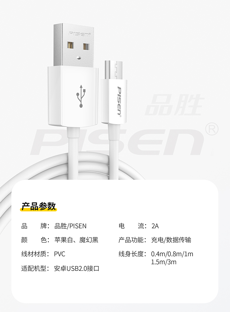 【品胜】正品专卖店,安卓数据线,一年只换不修,加粗铜芯,2A大电流,充电更快,体积更小,PVC线材结实,不打结,安全平稳快充、多种规格可选!