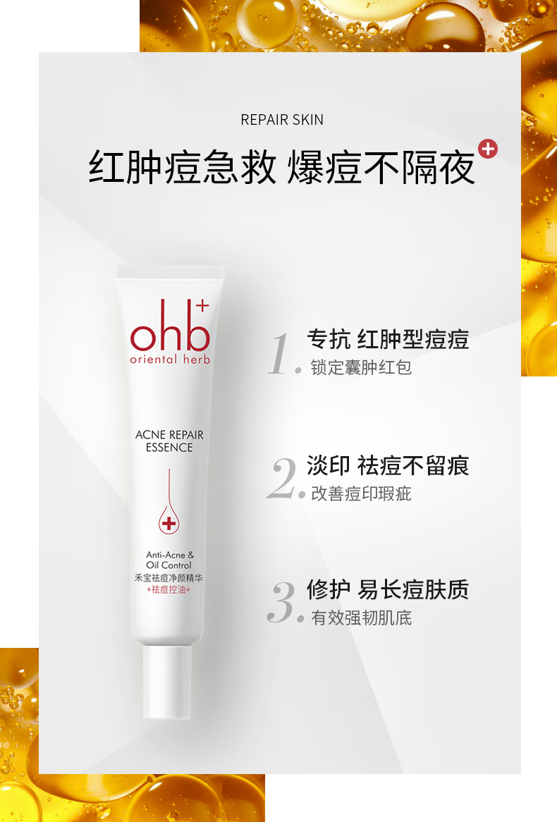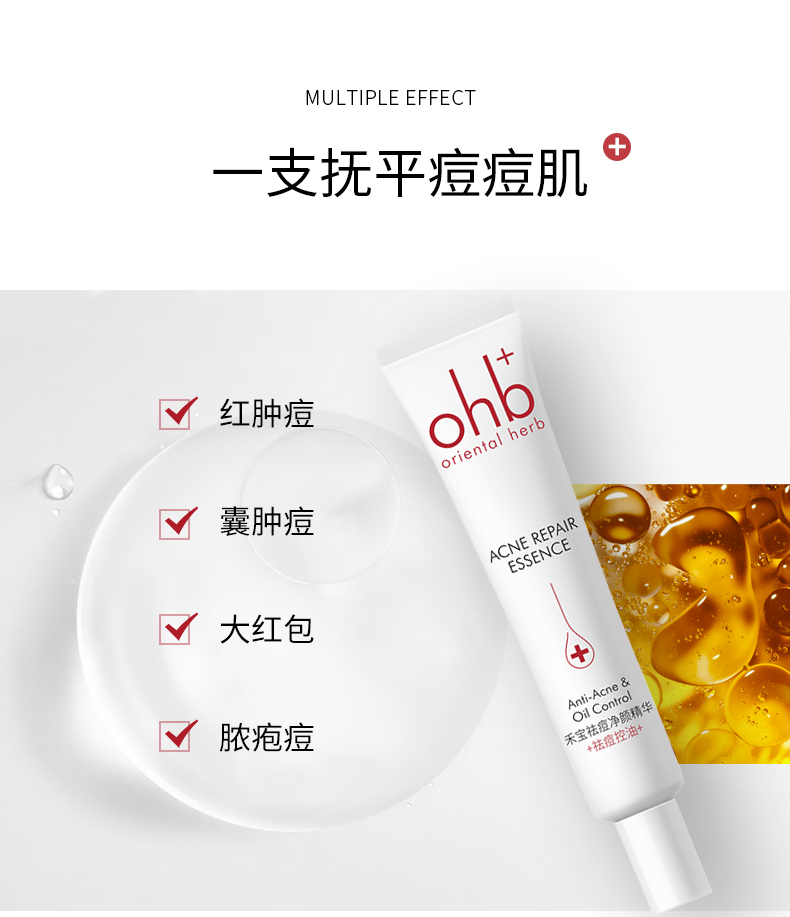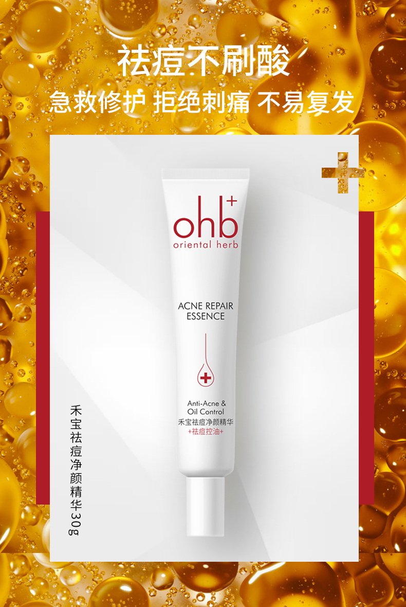 OHB/禾宝中医草本祛痘精华液凝胶30g祛痘印神器痘坑修复精华液