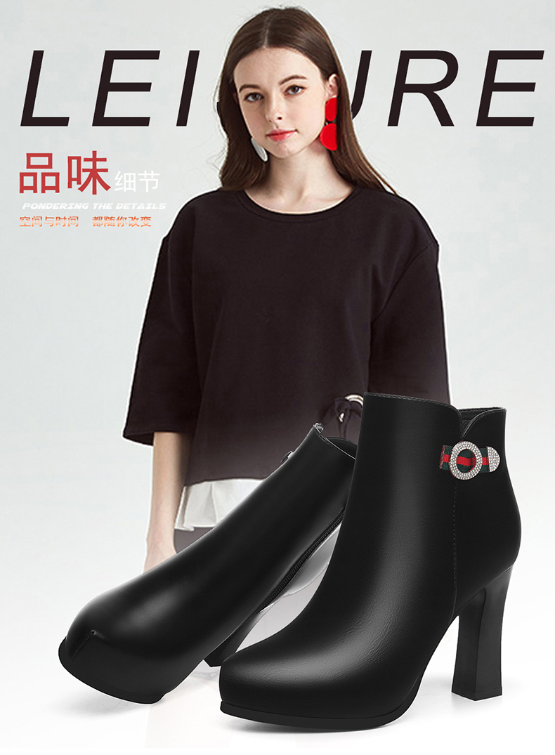 靴子女2019新款秋冬矮靴韩版粗跟短靴百搭高跟女鞋防水台单鞋加绒
