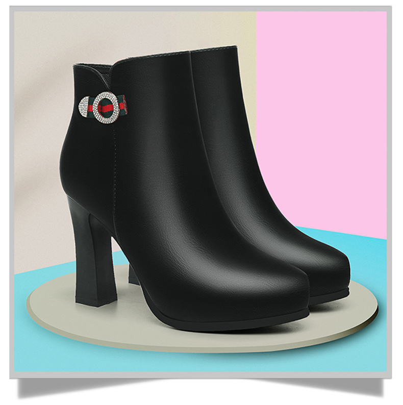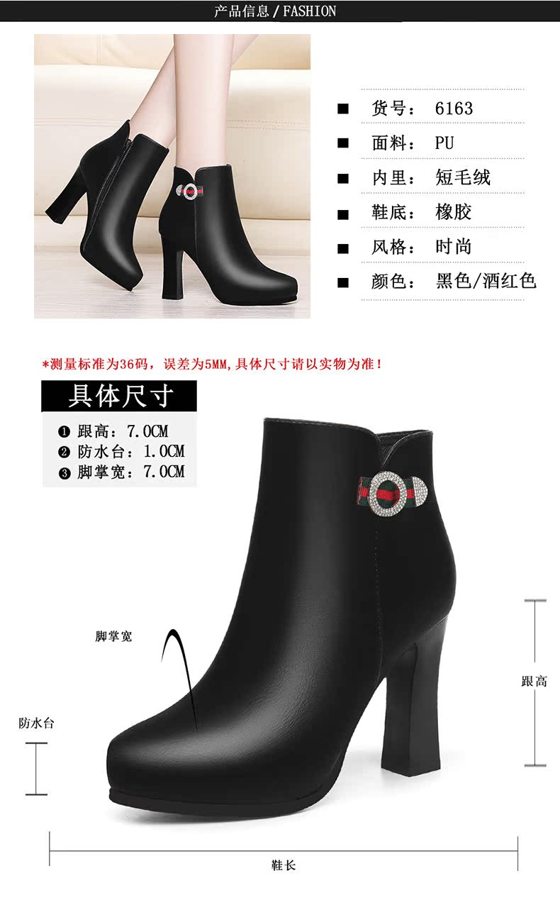 靴子女2019新款秋冬矮靴,韩版粗跟短靴,百搭高跟女鞋,防水台单鞋加绒,脚感很好,也很时尚,好看推荐大家购买