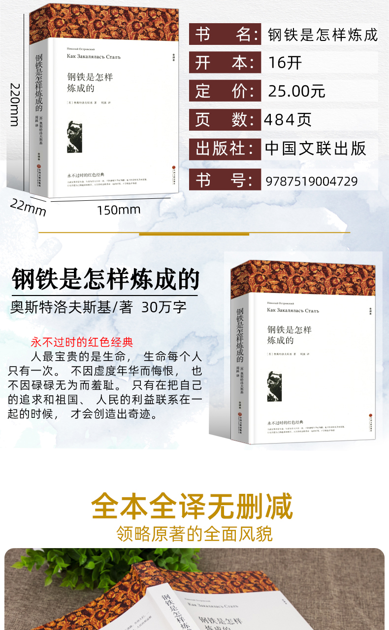 【券后6.8元】钢铁是怎样炼成的初中正版原著原版完整版,不累眼,字迹清晰,老师推荐,增加阅读能力。