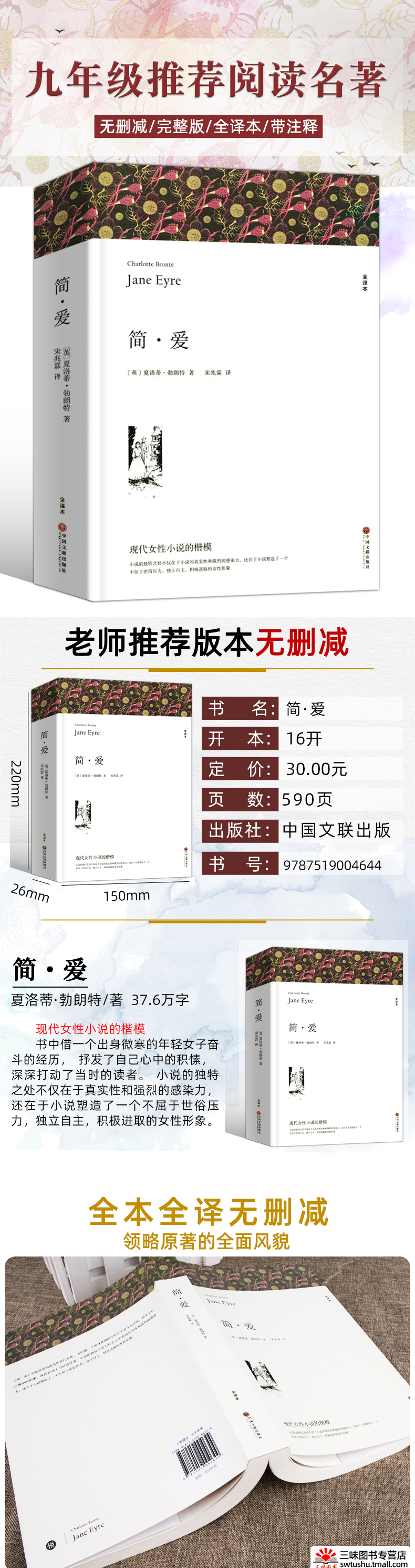 【赠考点 无删减带注释】简爱 书籍正版包邮原著初中生九年级必读课外书新初三课标阅读原版完整版世界经典文学名著外国小说 wp