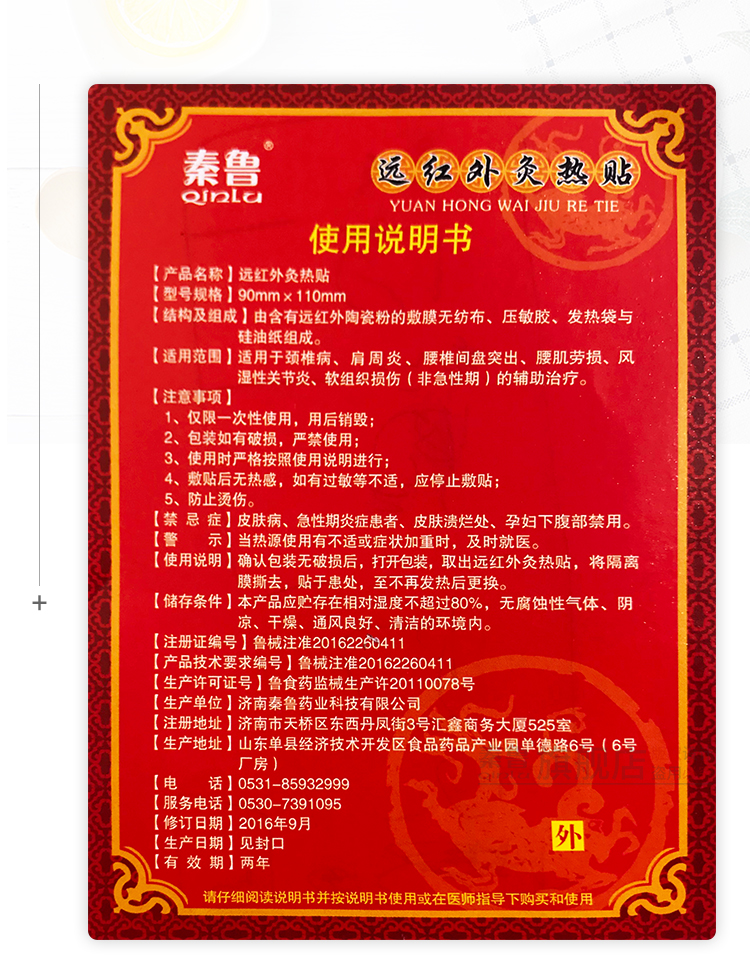 秦鲁远红外灸热贴颈肩腰腿型活血止疼膏贴颈椎贴膏关节疼痛理疗贴