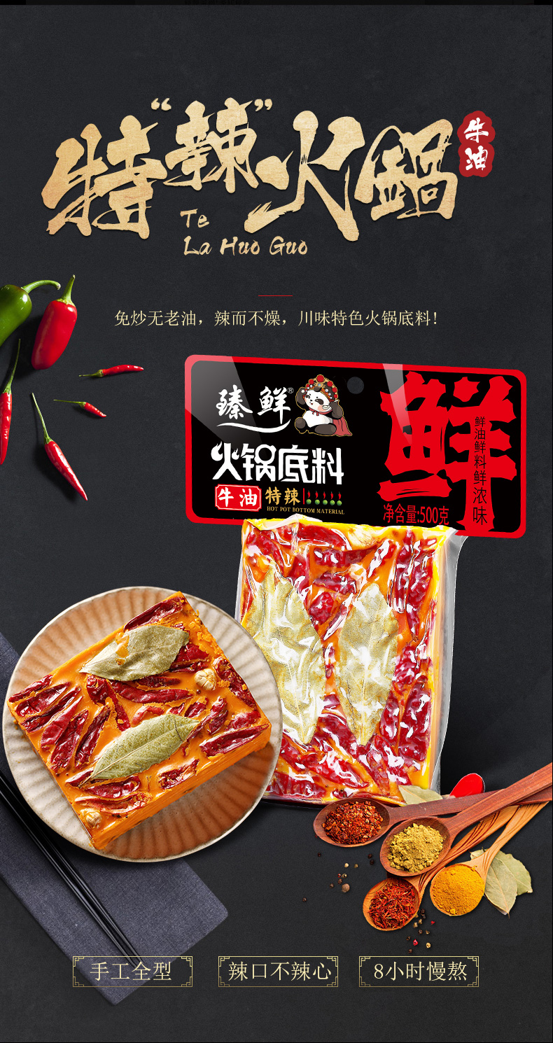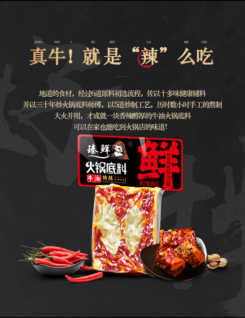 重庆麻辣火锅底料纯牛油手工特辣麻辣烫汤料500g袋装四川特产火锅